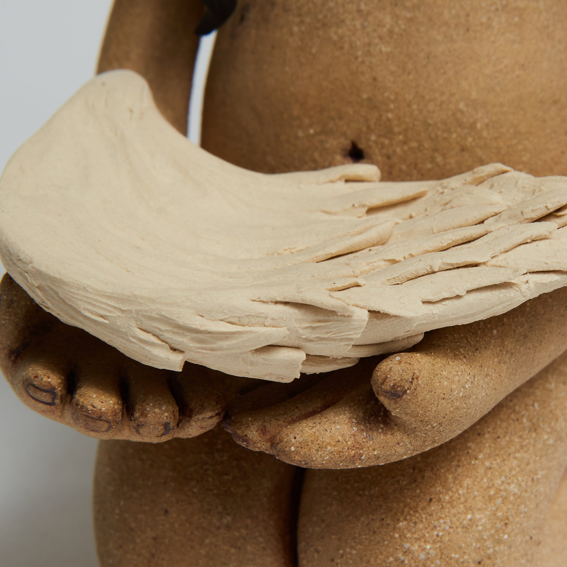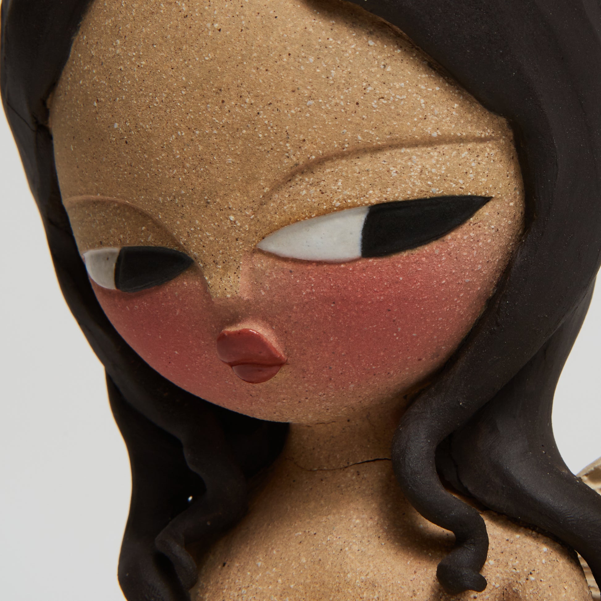 Hand-made ceramic Sculpture. This piece is hand-sculpted, then it is fired in a kiln, glazed for coloring, then fired once again for final product. Each piece is one of a kind. No piece is perfect and there may be small imperfections.