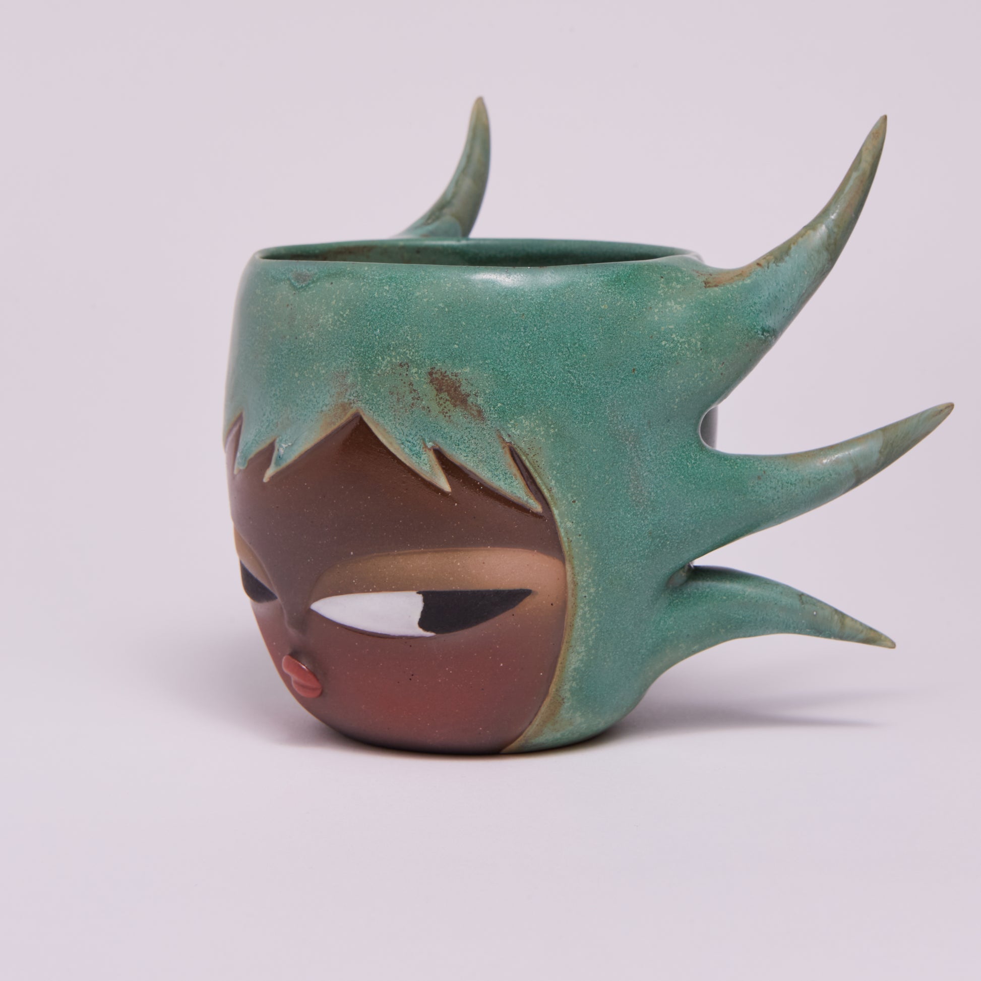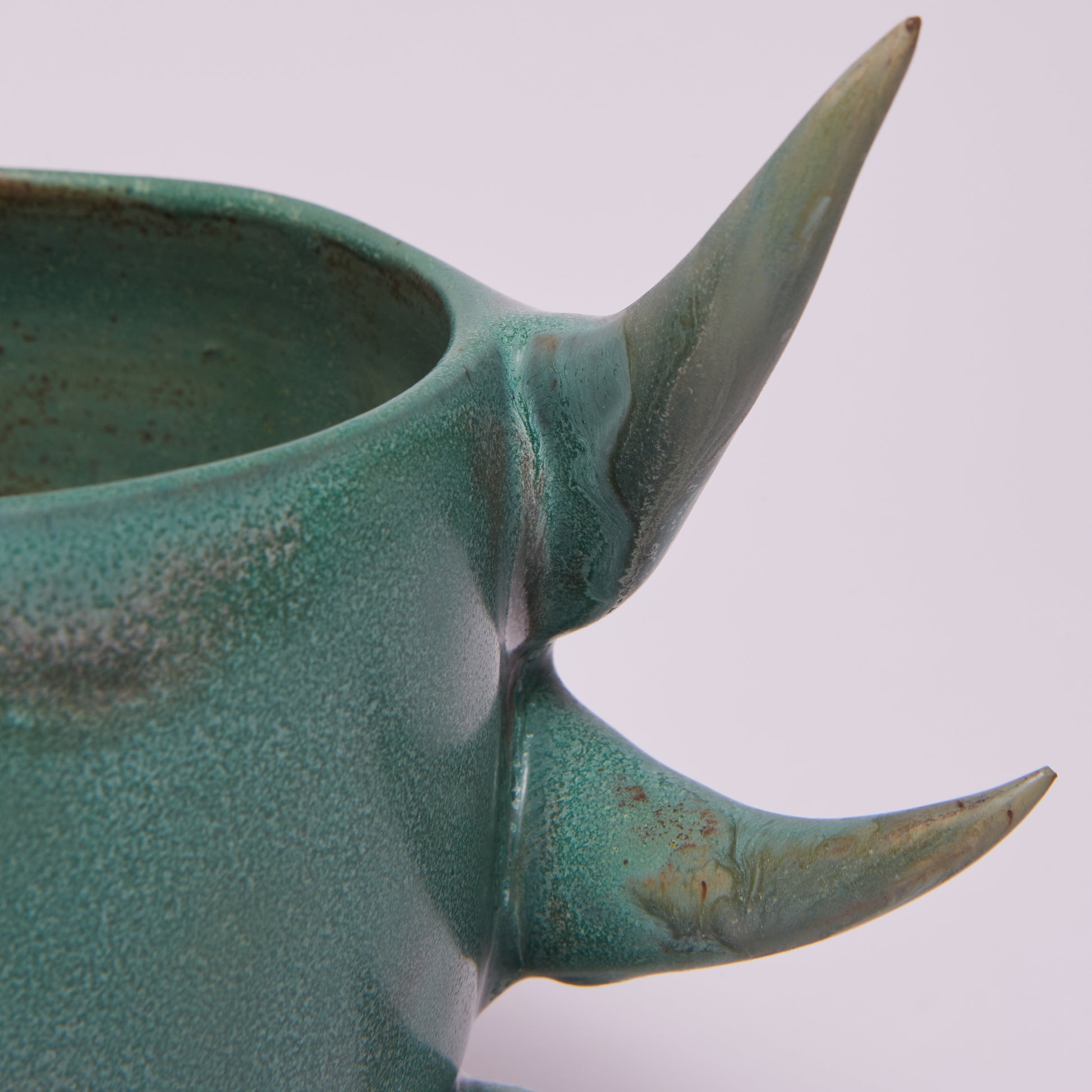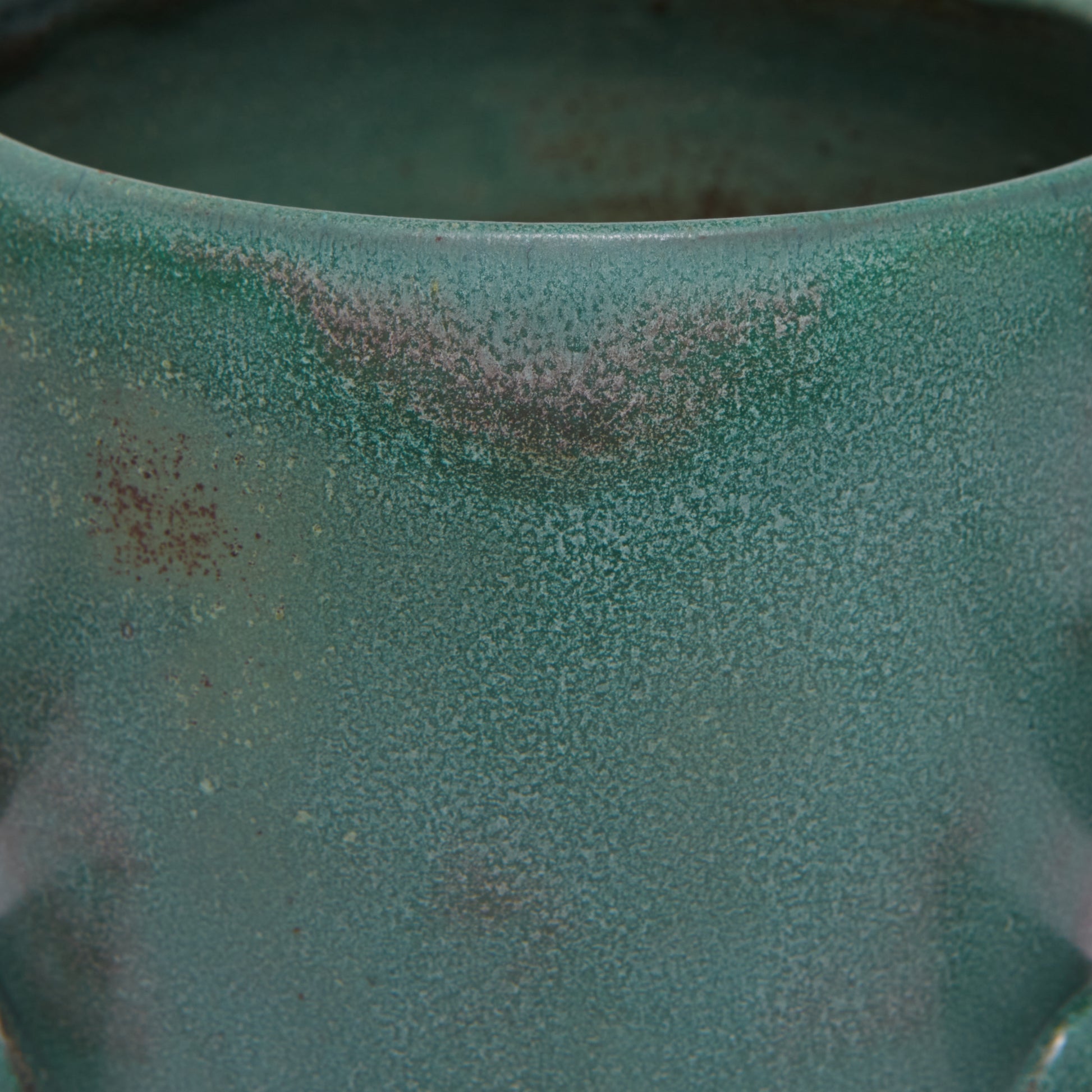 Hand-made ceramic vessel. This piece is thrown on the wheel, hand-sculpted, then it is fired in a kiln, glazed for coloring, then fired once again for final product. Each piece is one of a kind. No piece is perfect and there may be small imperfections.