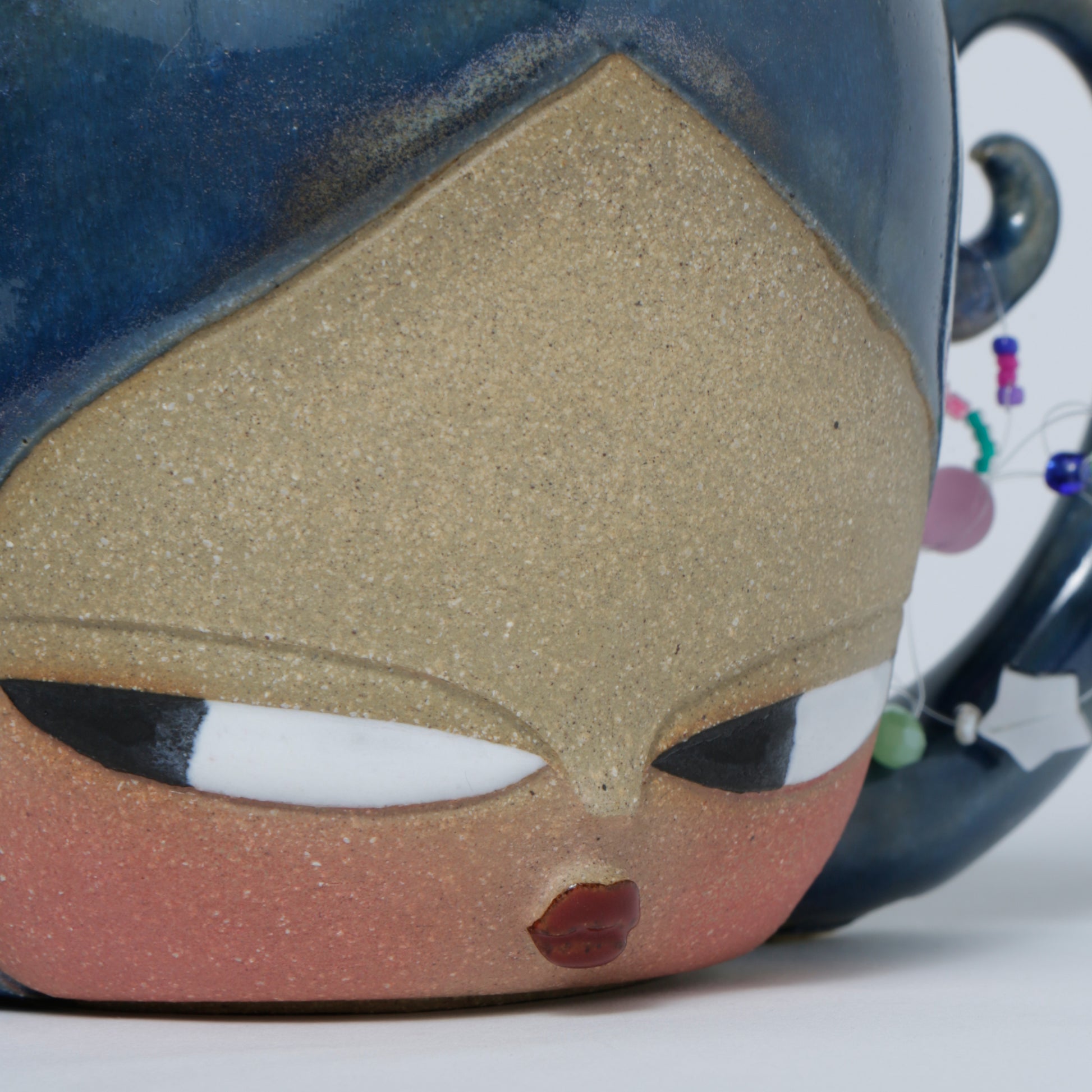 Hand-made ceramic vessel. This piece is thrown on the wheel, hand-sculpted, then it is fired in a kiln, glazed for coloring, then fired once again for final product. Each piece is one of a kind. No piece is perfect and there may be small imperfections.