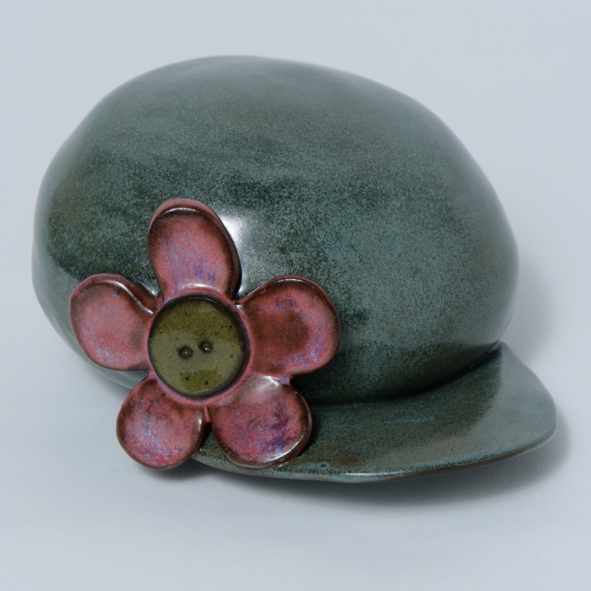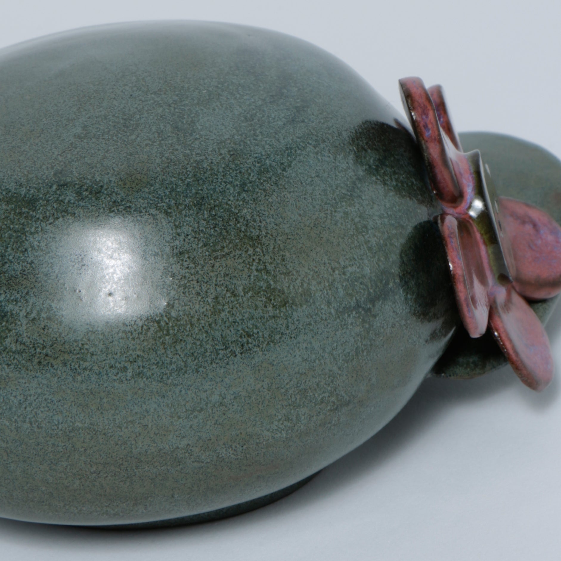 Hand-made ceramic vessel. This piece is thrown on the wheel, hand-sculpted, then it is fired in a kiln, glazed for coloring, then fired once again for final product. Each piece is one of a kind. No piece is perfect and there may be small imperfections.