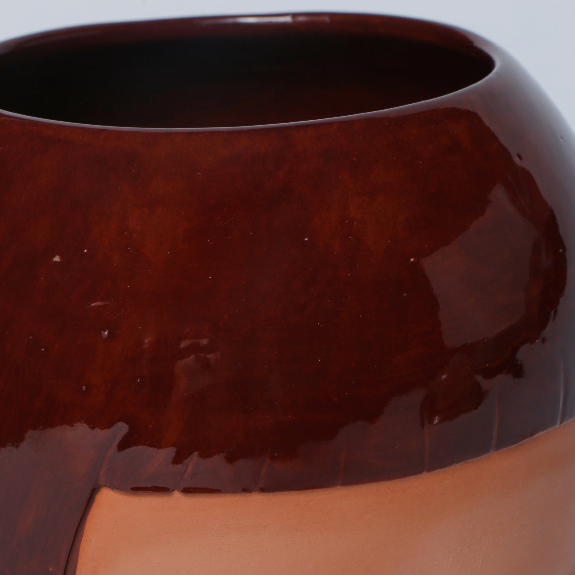 Hand-made ceramic vessel. This piece is thrown on the wheel, hand-sculpted, then it is fired in a kiln, glazed for coloring, then fired once again for final product. Each piece is one of a kind. No piece is perfect and there may be small imperfections.