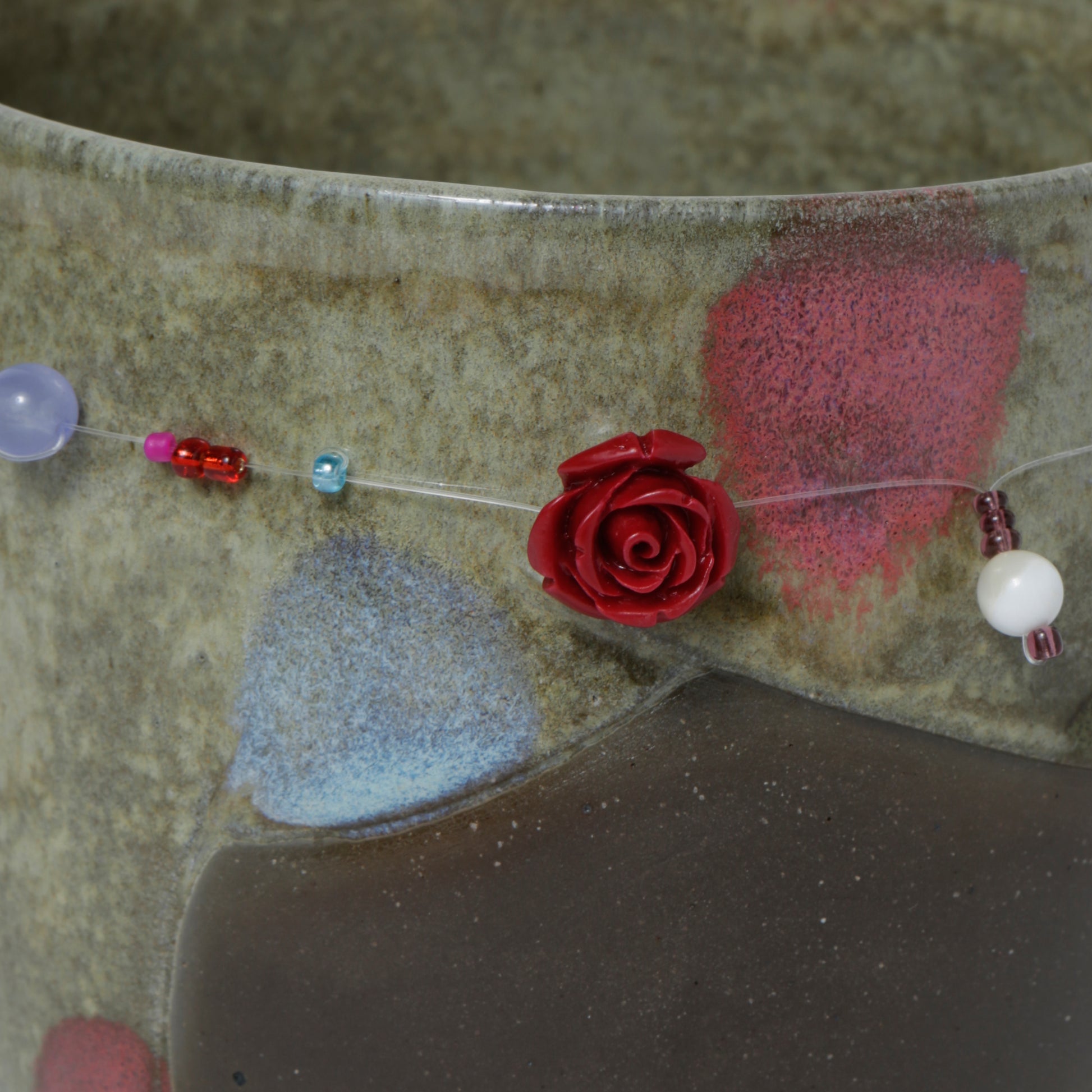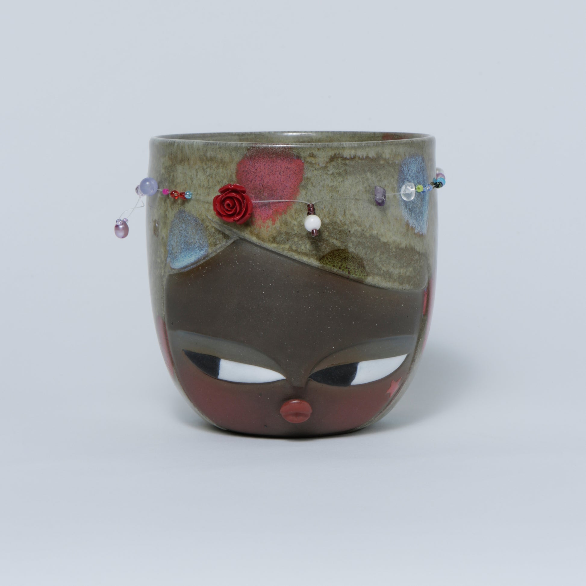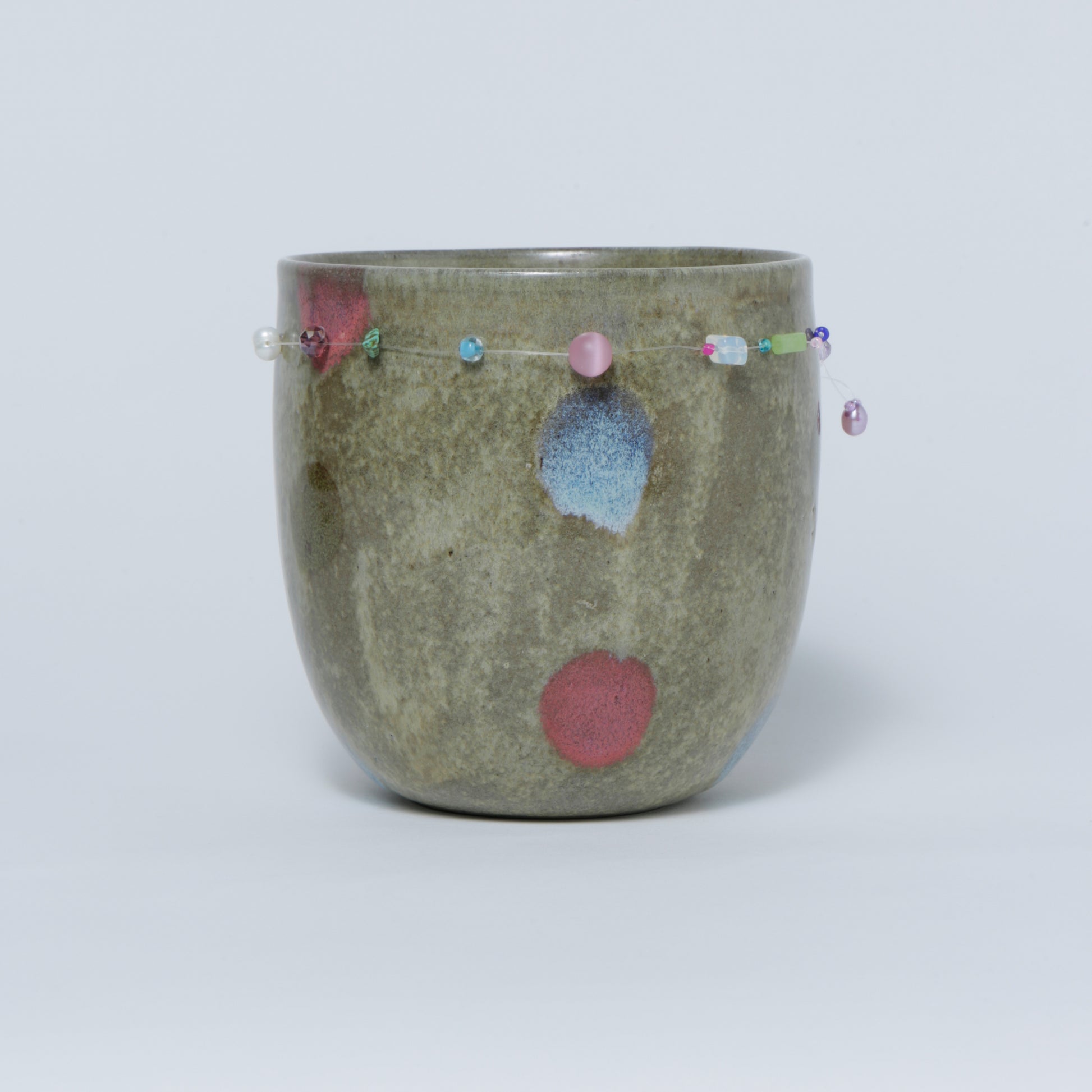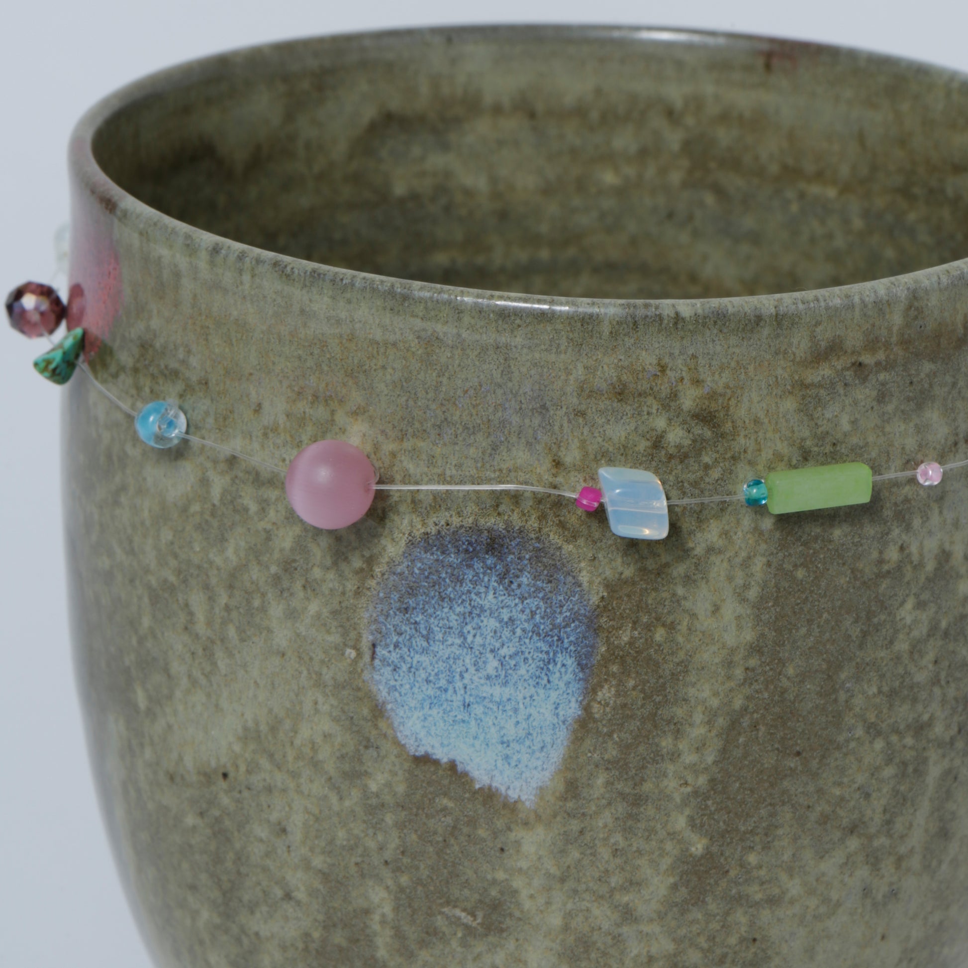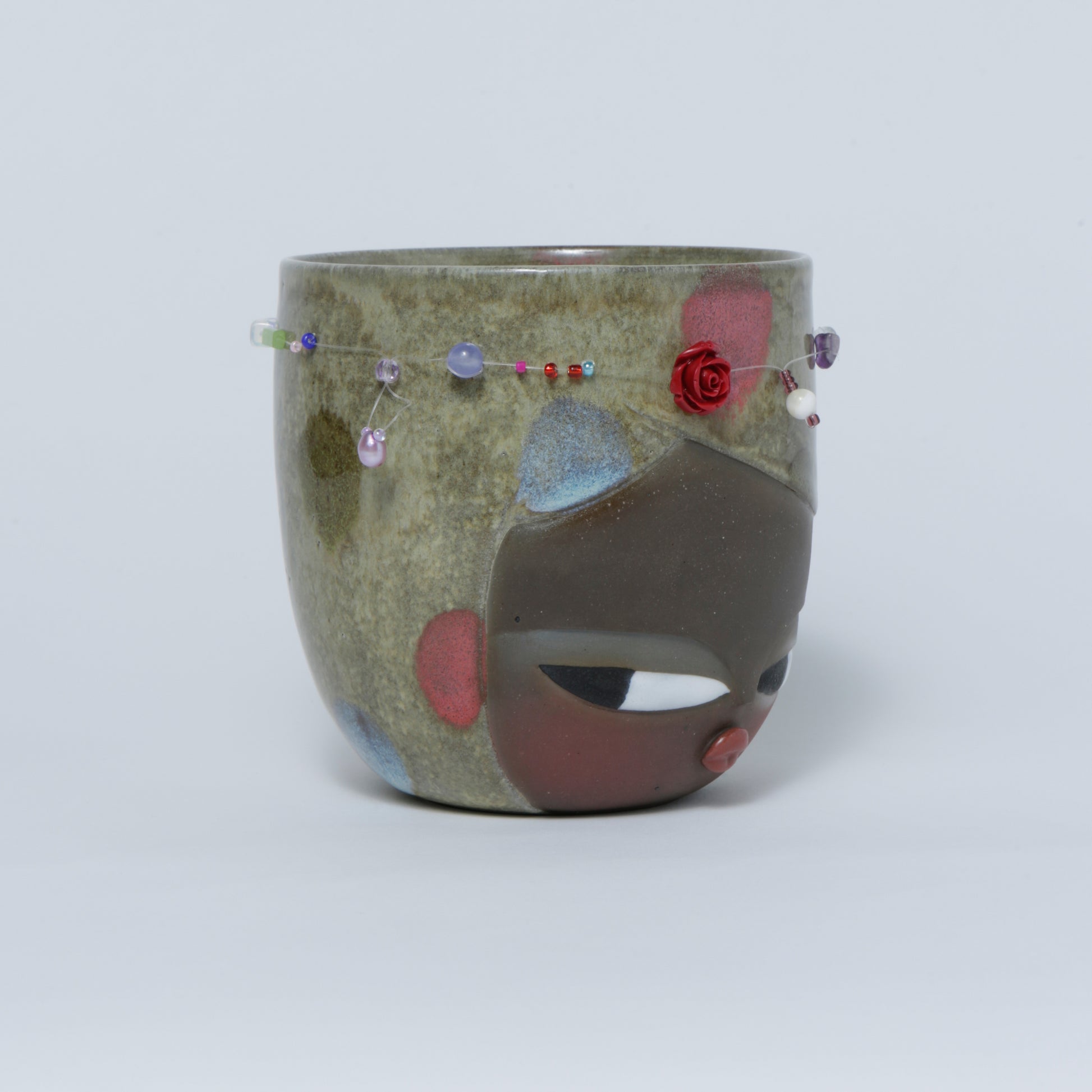 Hand-made ceramic vessel. This piece is thrown on the wheel, hand-sculpted, then it is fired in a kiln, glazed for coloring, then fired once again for final product. Each piece is one of a kind. No piece is perfect and there may be small imperfections.