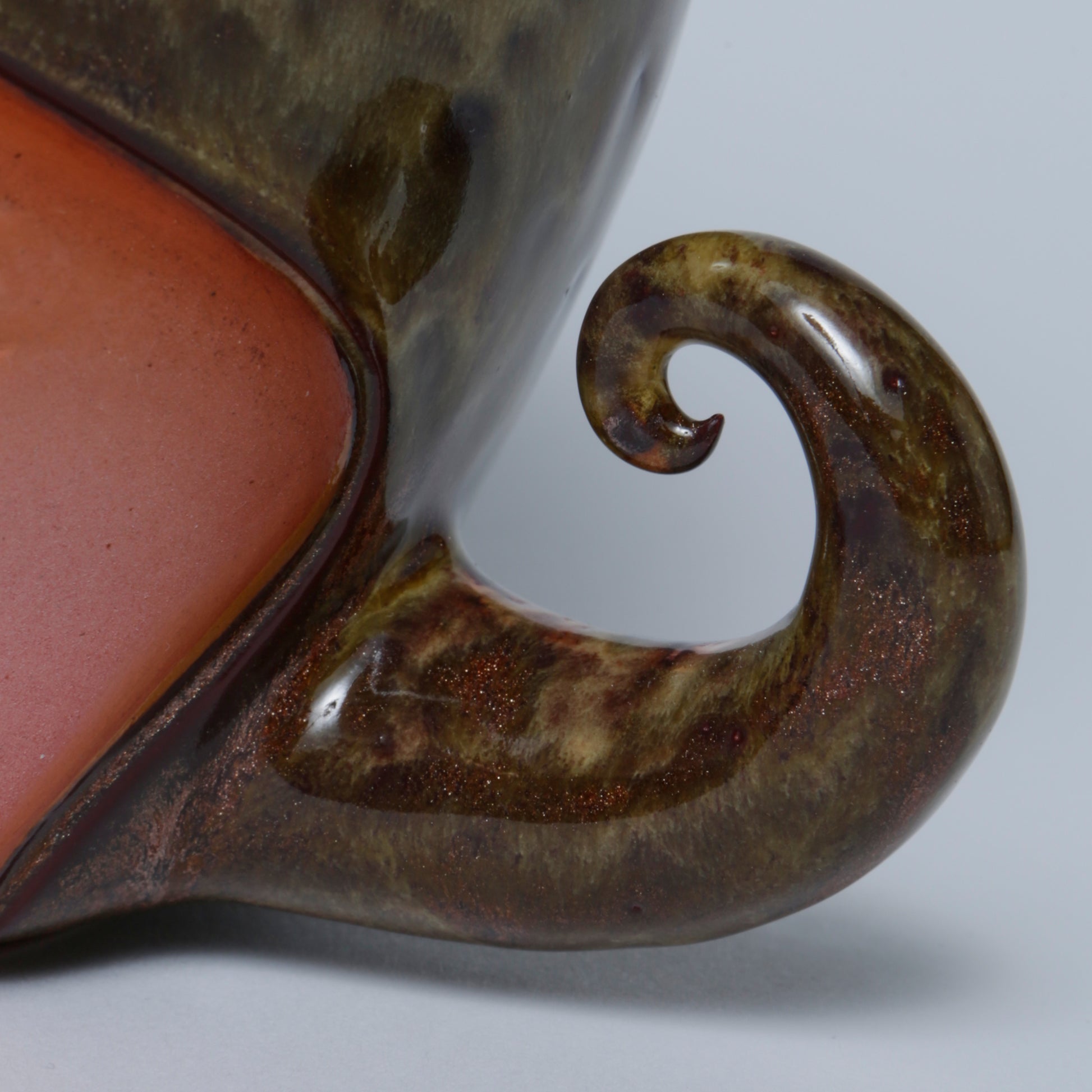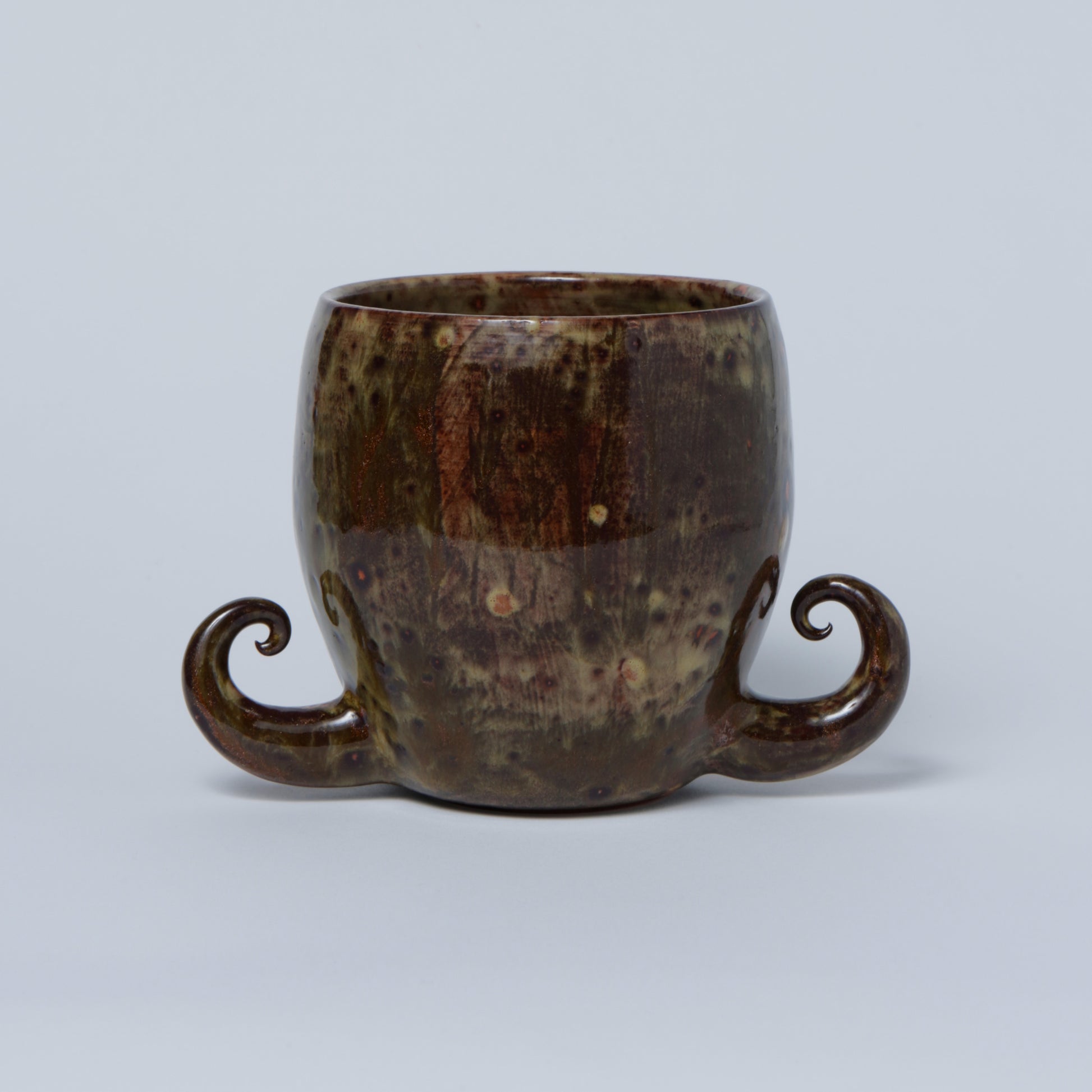 Hand-made ceramic vessel. This piece is thrown on the wheel, hand-sculpted, then it is fired in a kiln, glazed for coloring, then fired once again for final product. Each piece is one of a kind. No piece is perfect and there may be small imperfections.