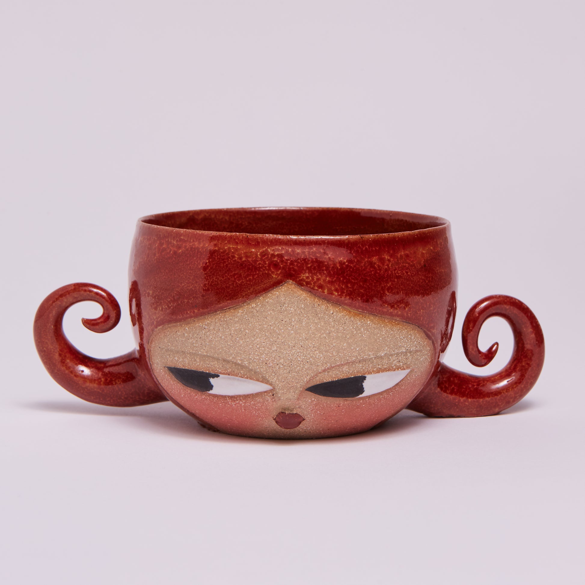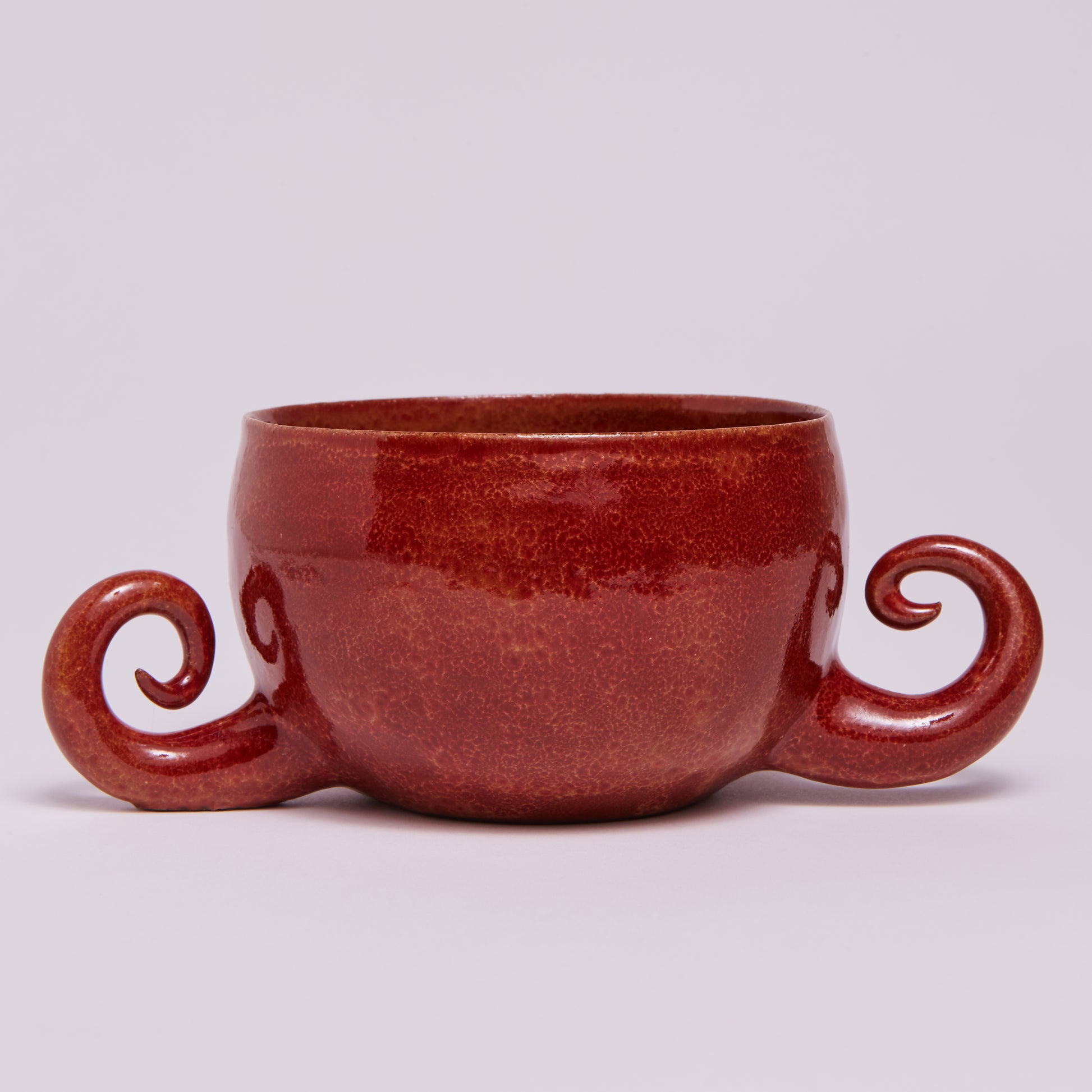Hand-made ceramic vessel. This piece is thrown on the wheel, hand-sculpted, then it is fired in a kiln, glazed for coloring, then fired once again for final product. Each piece is one of a kind. No piece is perfect and there may be small imperfections.