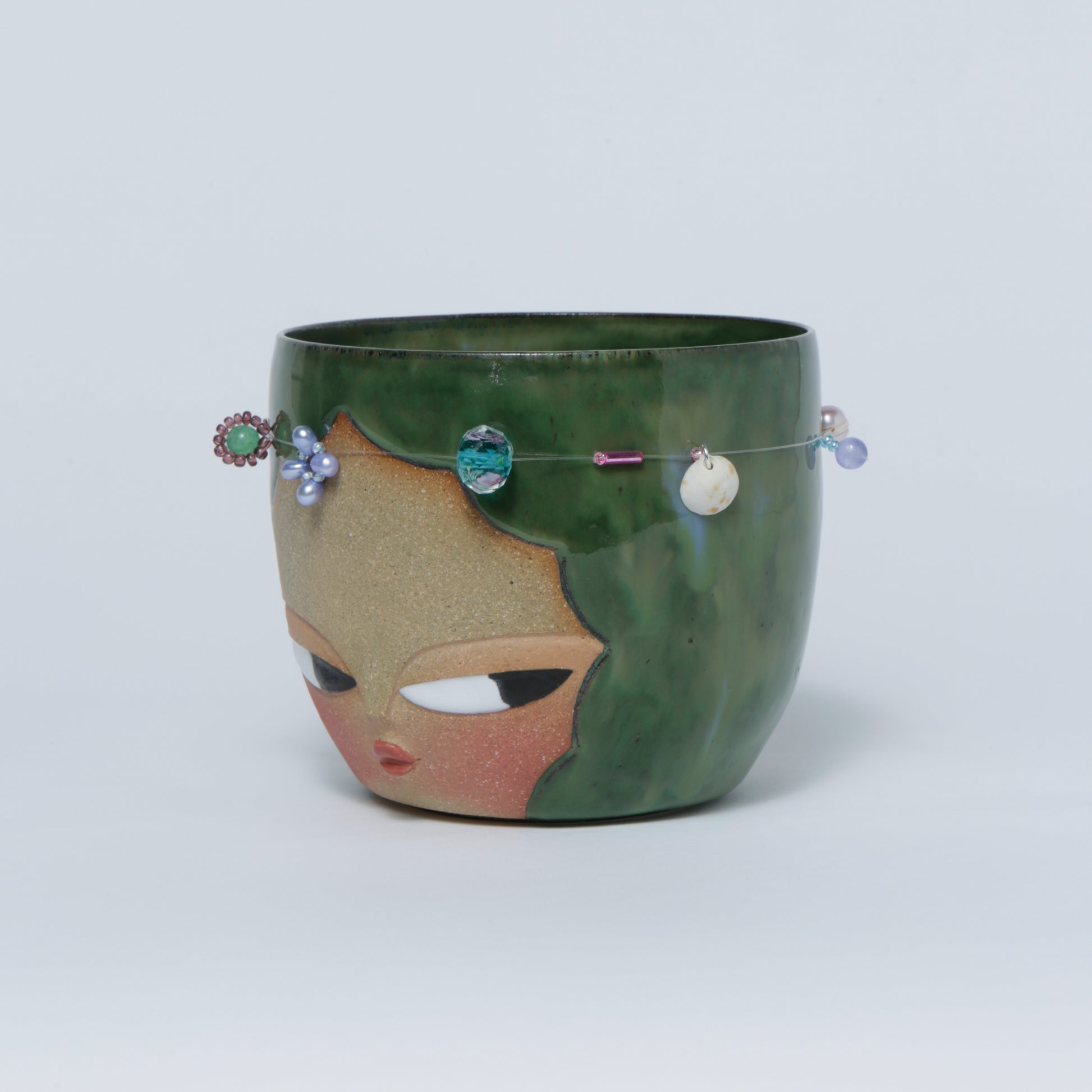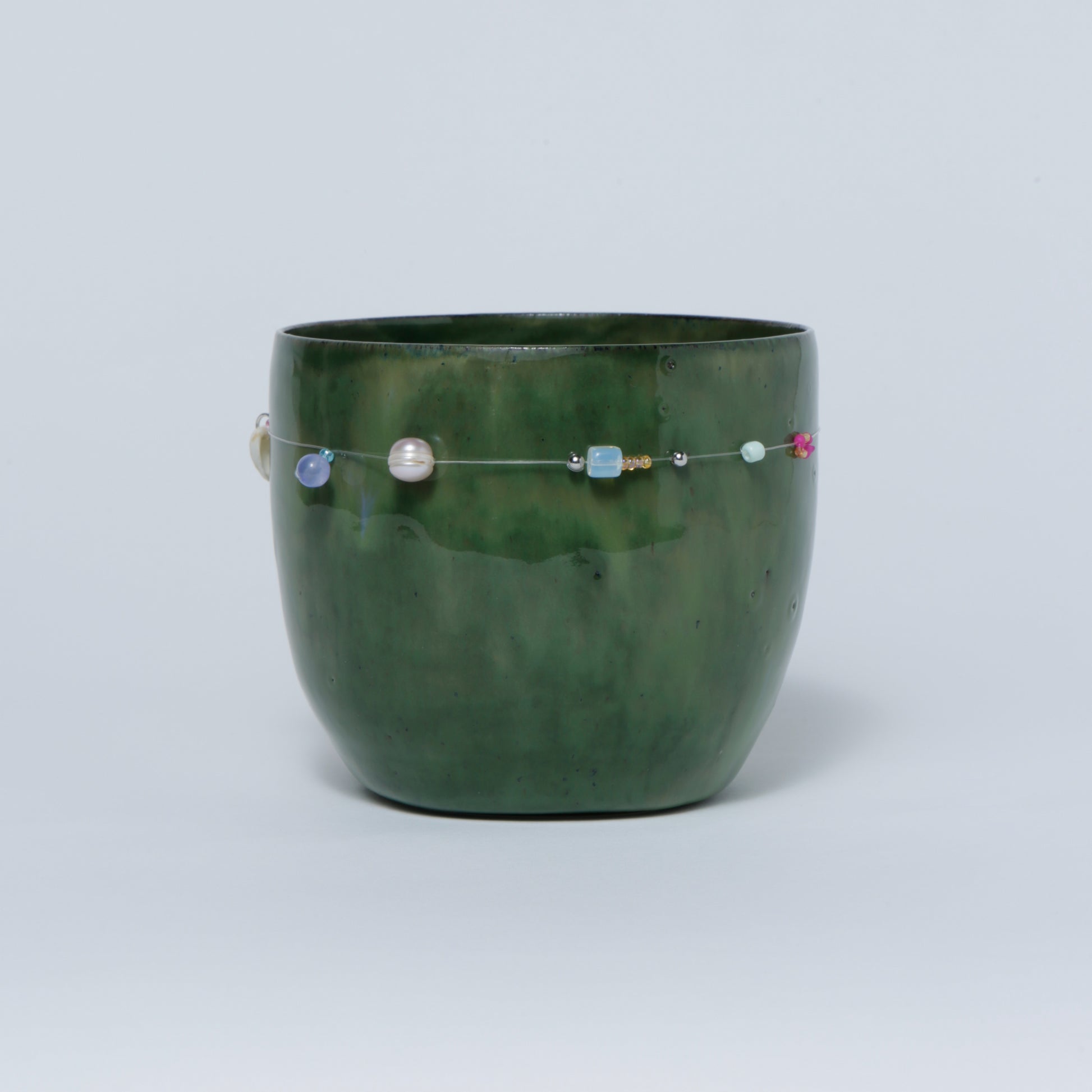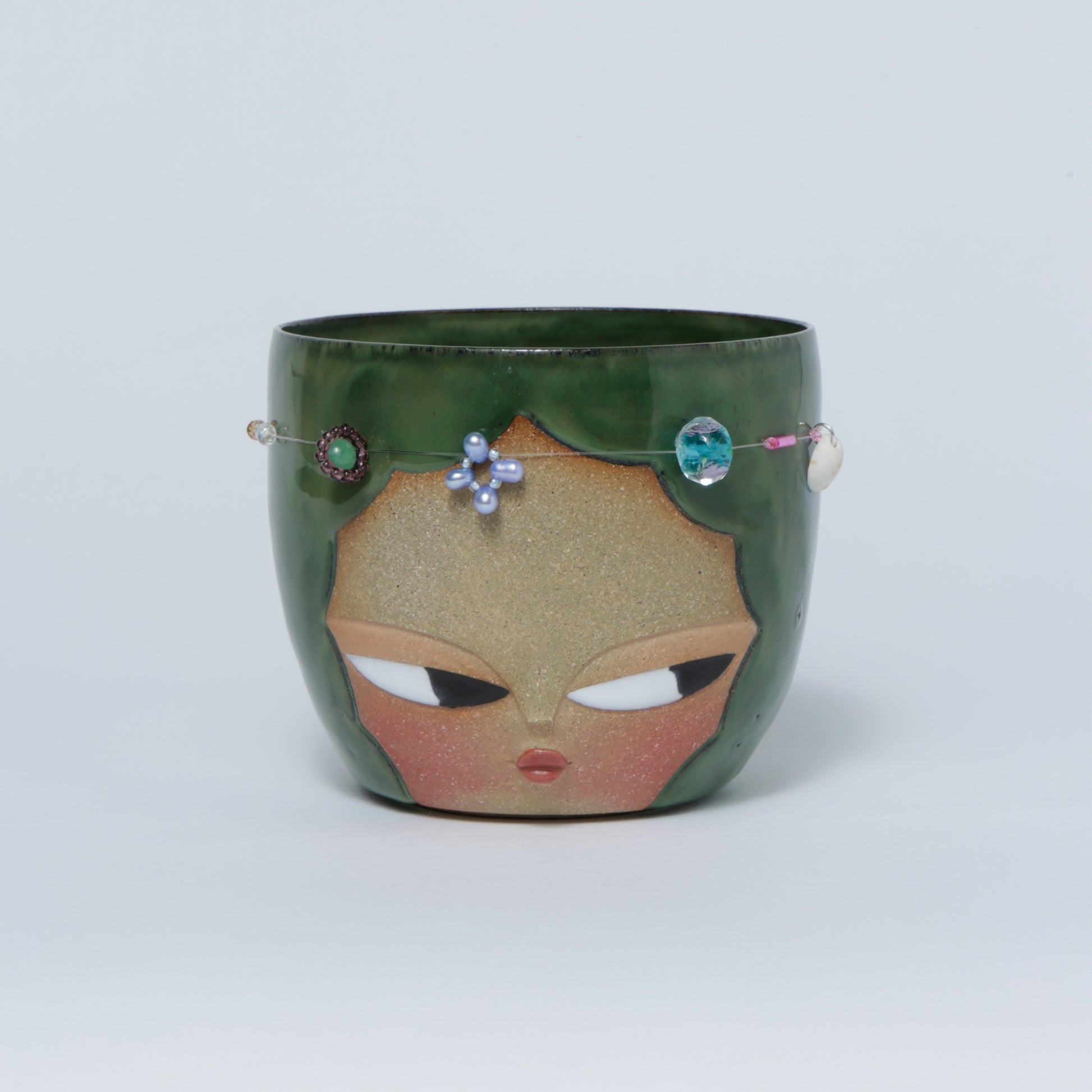 Hand-made ceramic vessel. This piece is thrown on the wheel, hand-sculpted, then it is fired in a kiln, glazed for coloring, then fired once again for final product. Each piece is one of a kind. No piece is perfect and there may be small imperfections.