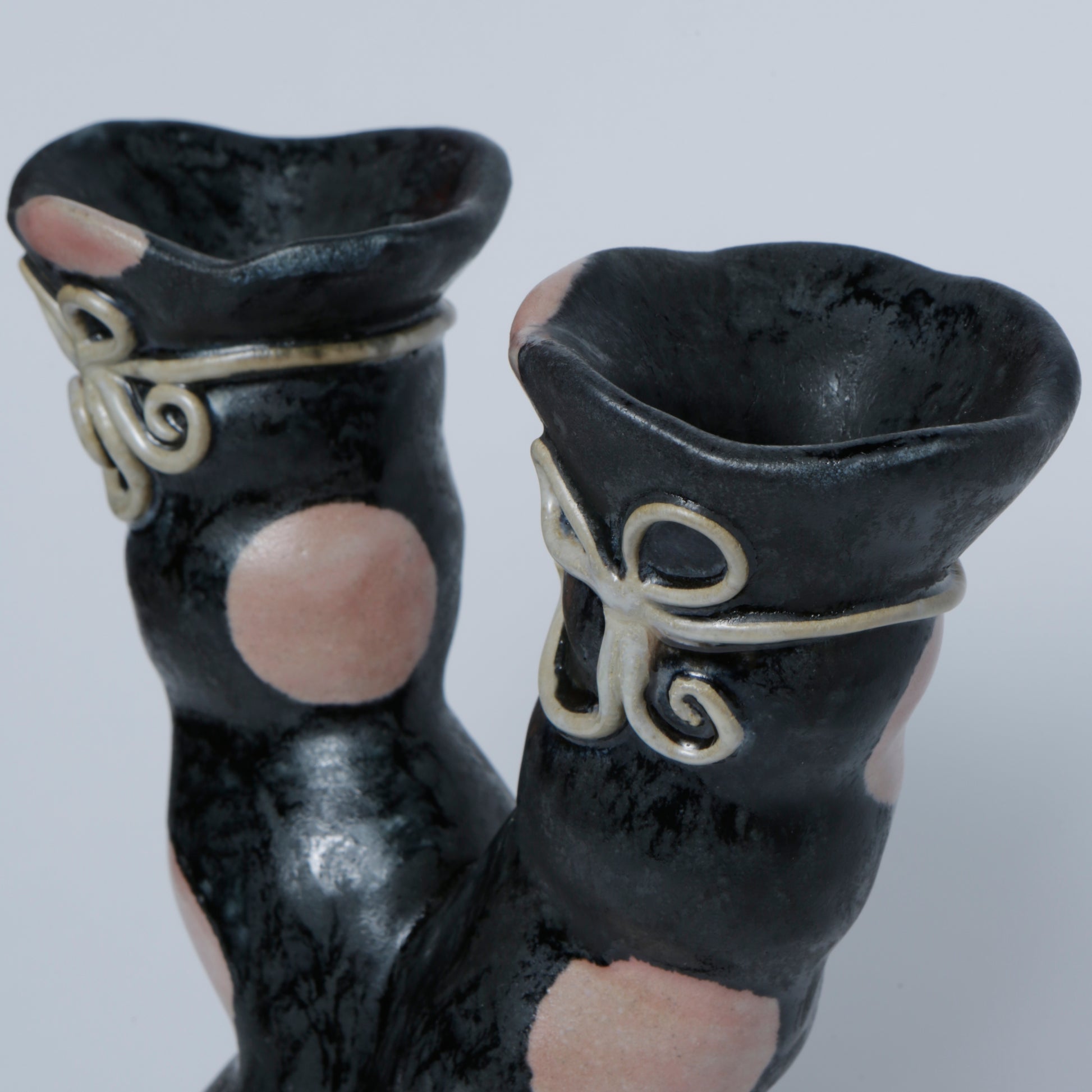 Hand-made ceramic vessel. This piece is thrown on the wheel, hand-sculpted, then it is fired in a kiln, glazed for coloring, then fired once again for final product. Each piece is one of a kind. No piece is perfect and there may be small imperfections.