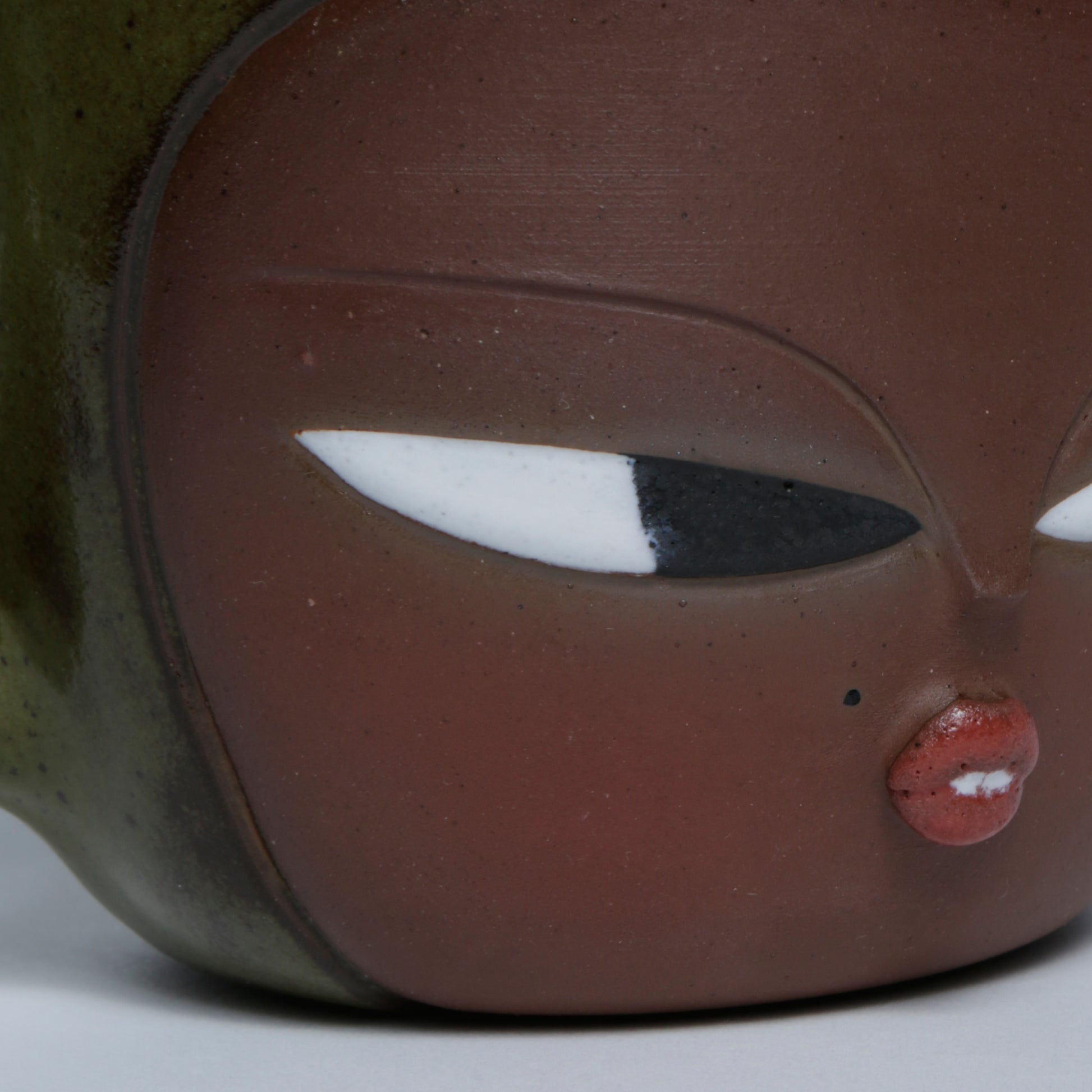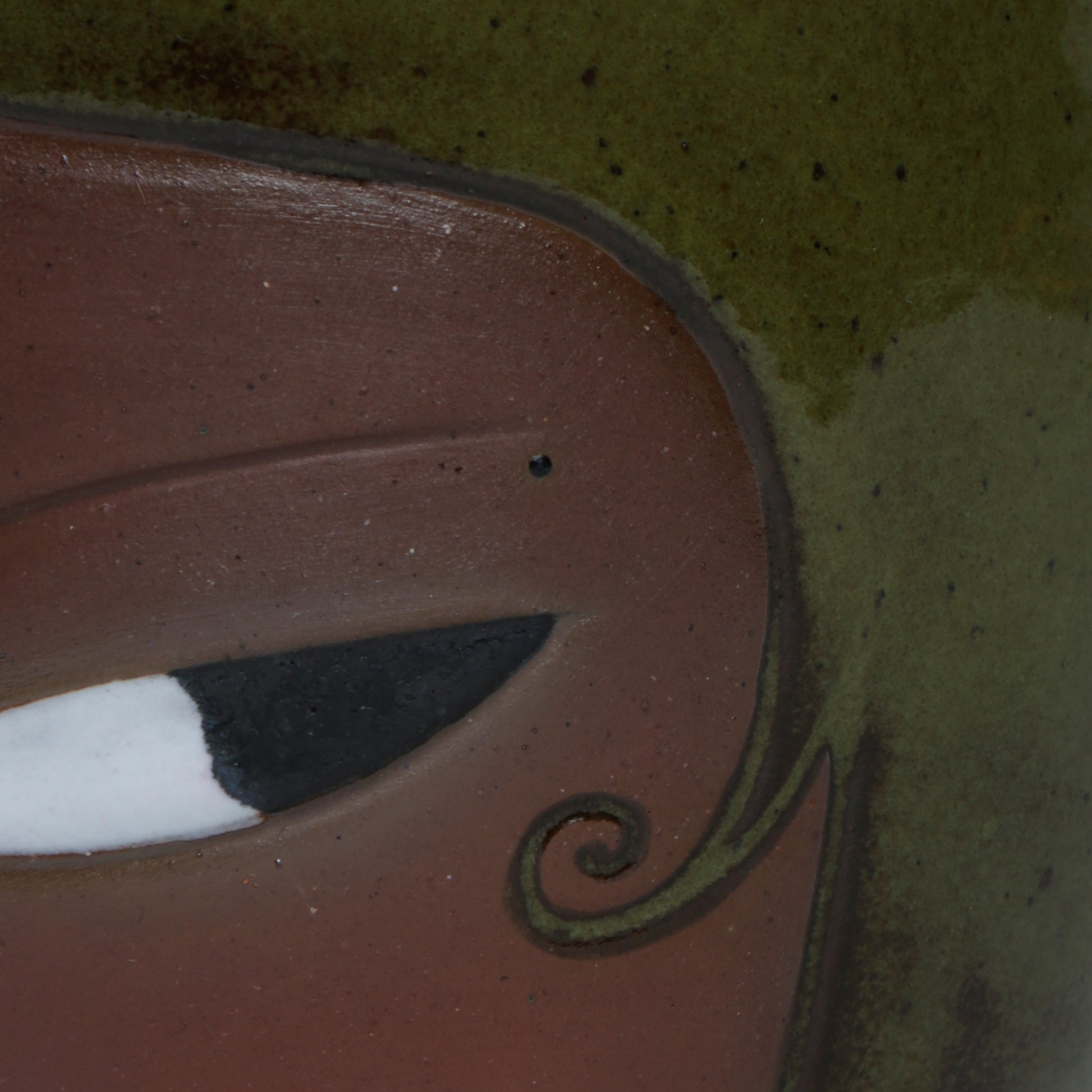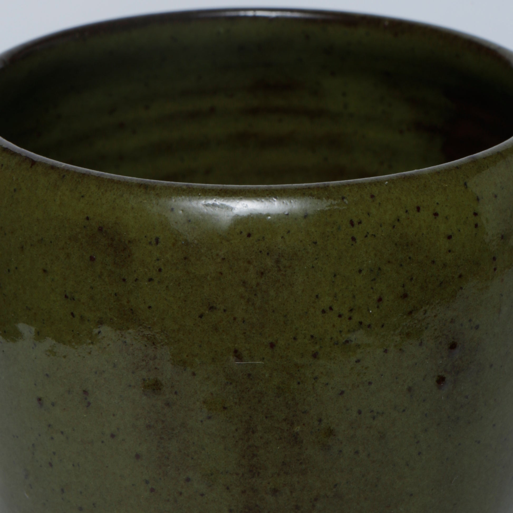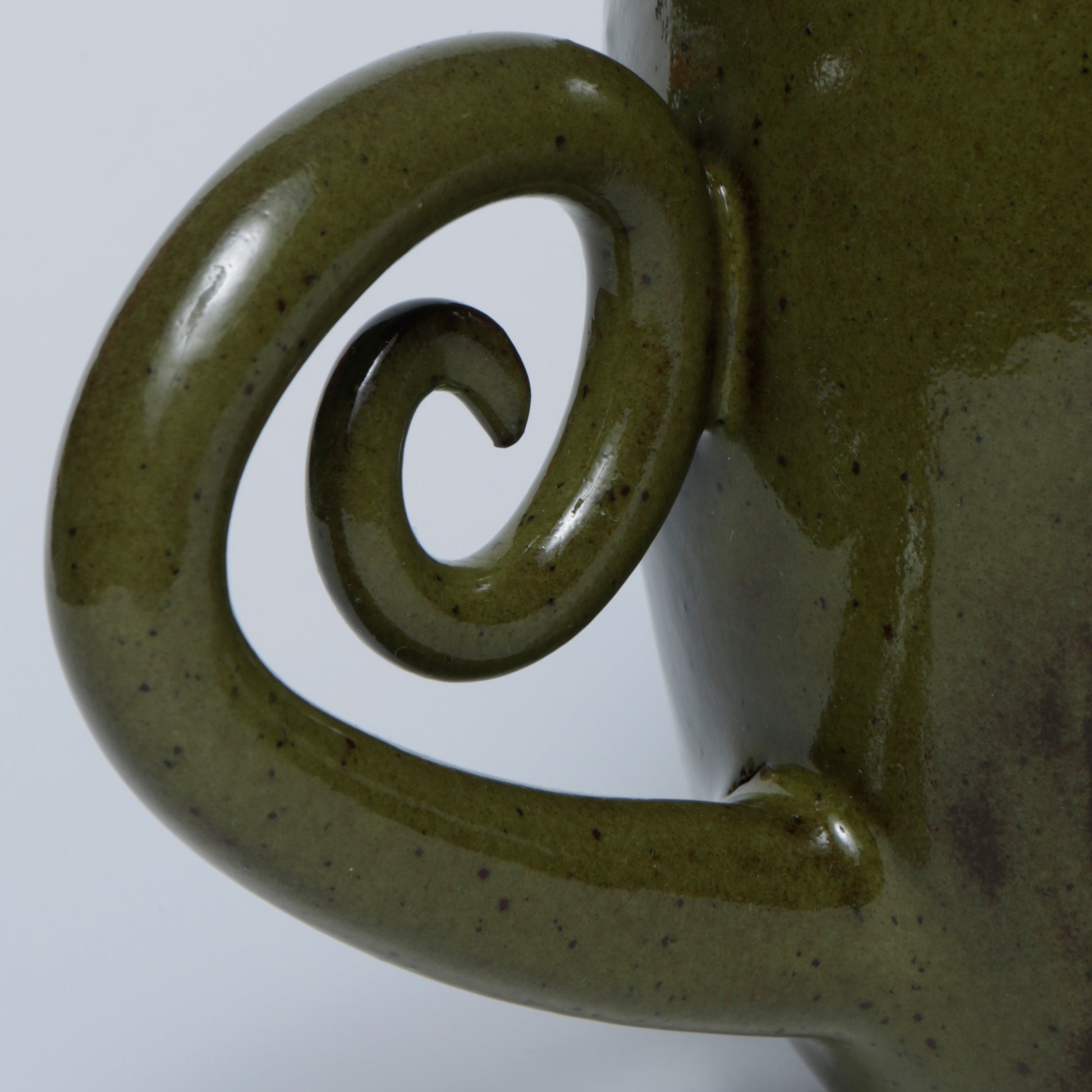 Hand-made ceramic vessel. This piece is thrown on the wheel, hand-sculpted, then it is fired in a kiln, glazed for coloring, then fired once again for final product. Each piece is one of a kind. No piece is perfect and there may be small imperfections.