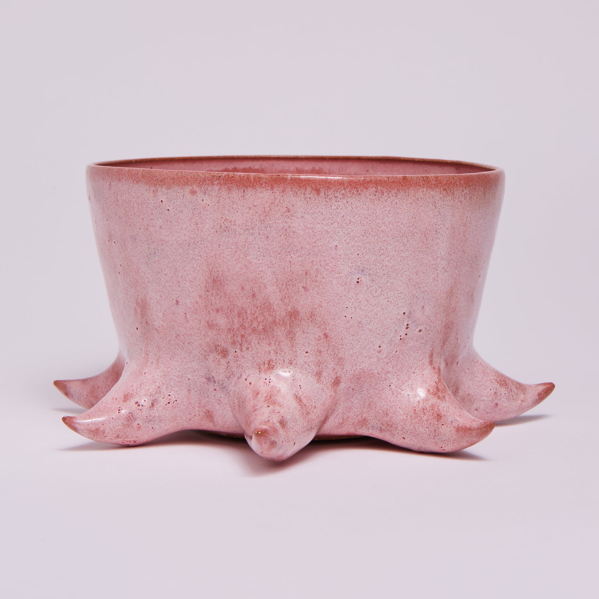 Hand-made ceramic vessel. This piece is thrown on the wheel, hand-sculpted, then it is fired in a kiln, glazed for coloring, then fired once again for final product. Each piece is one of a kind. No piece is perfect and there may be small imperfections.