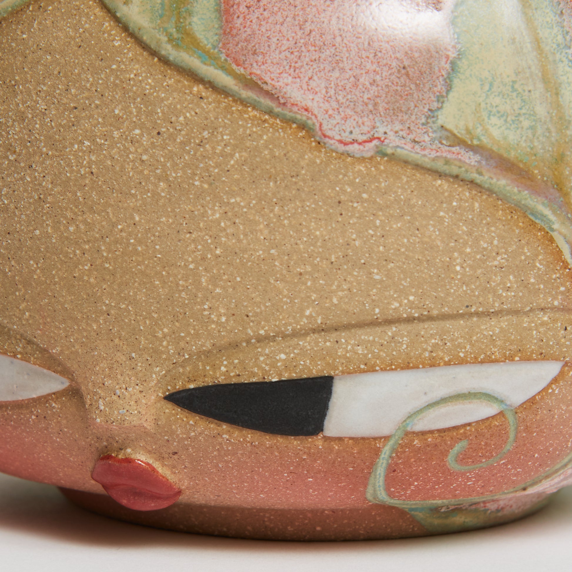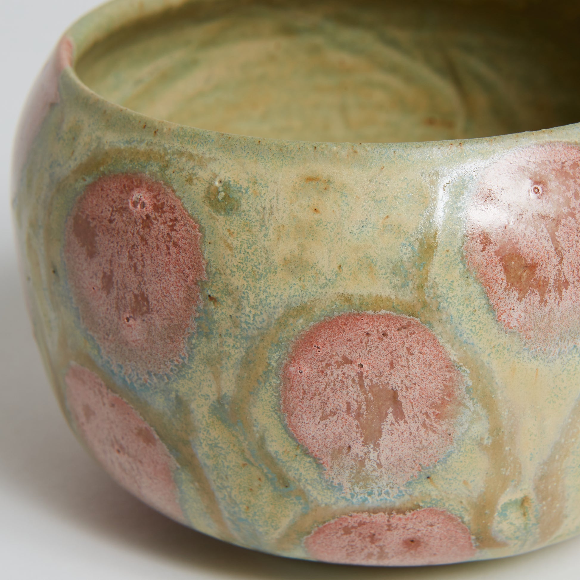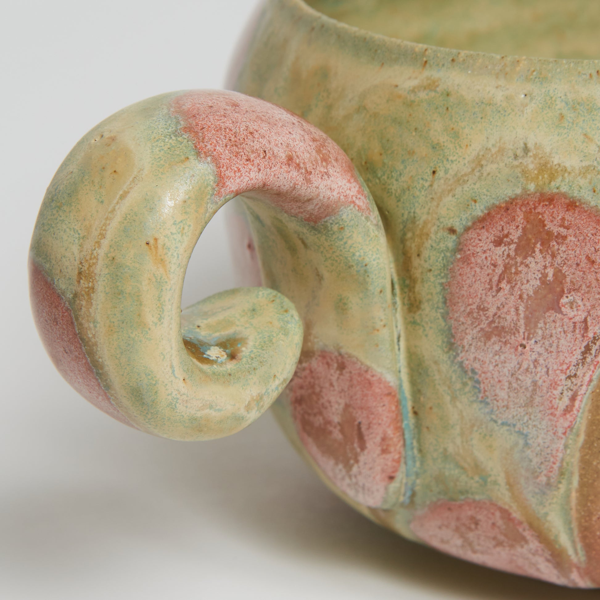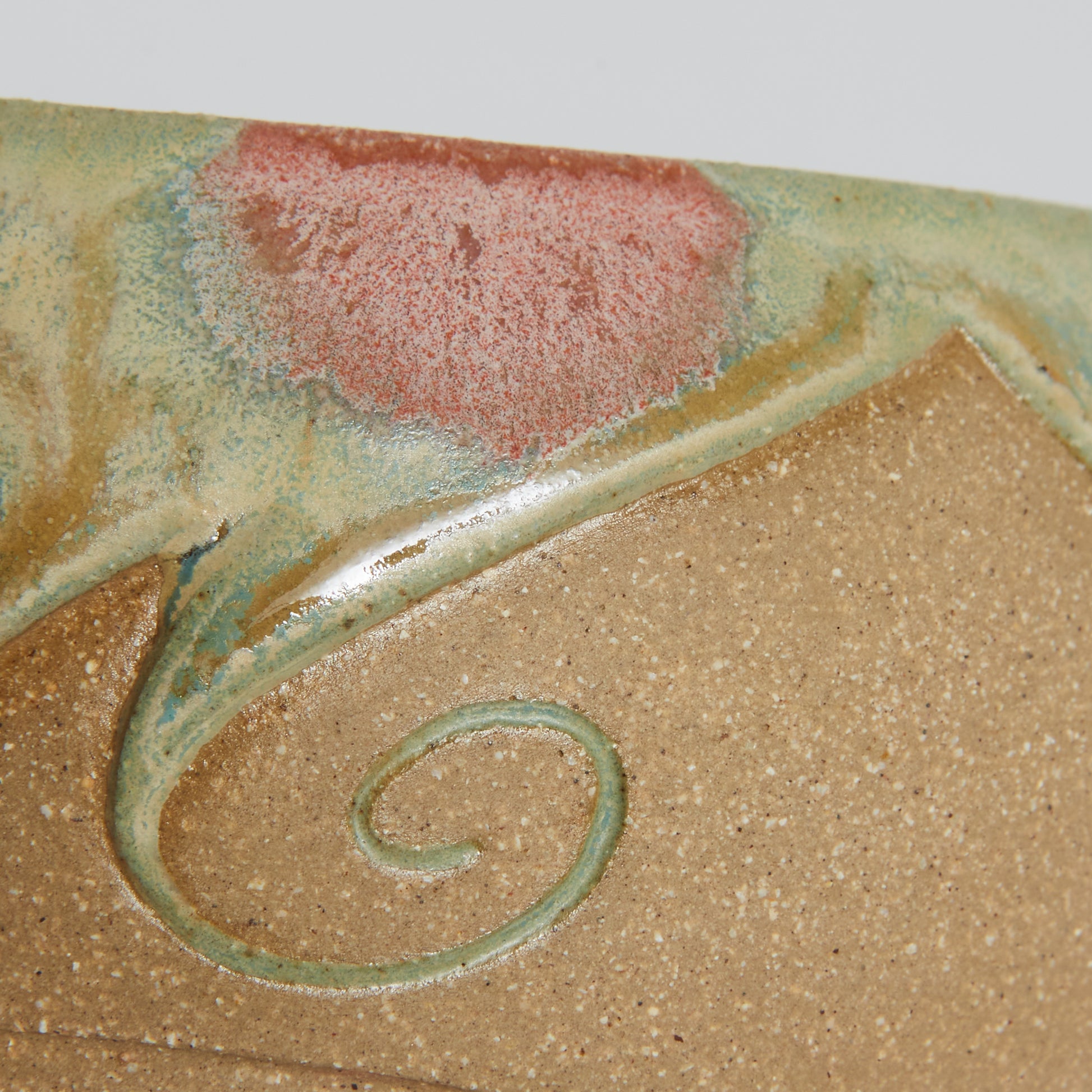 Hand-made ceramic vessel. This piece is thrown on the wheel, hand-sculpted, then it is fired in a kiln, glazed for coloring, then fired once again for final product. Each piece is one of a kind. No piece is perfect and there may be small imperfections.