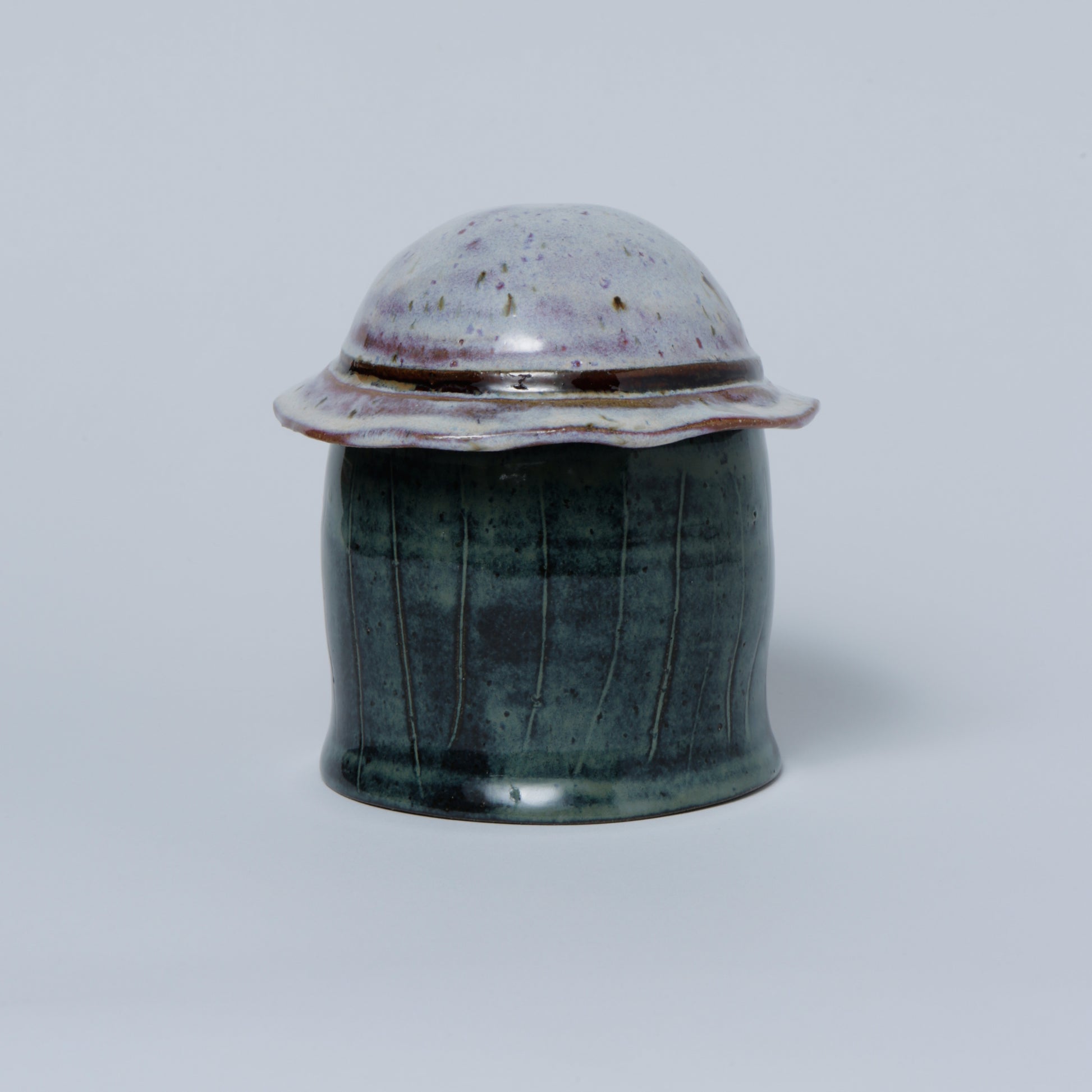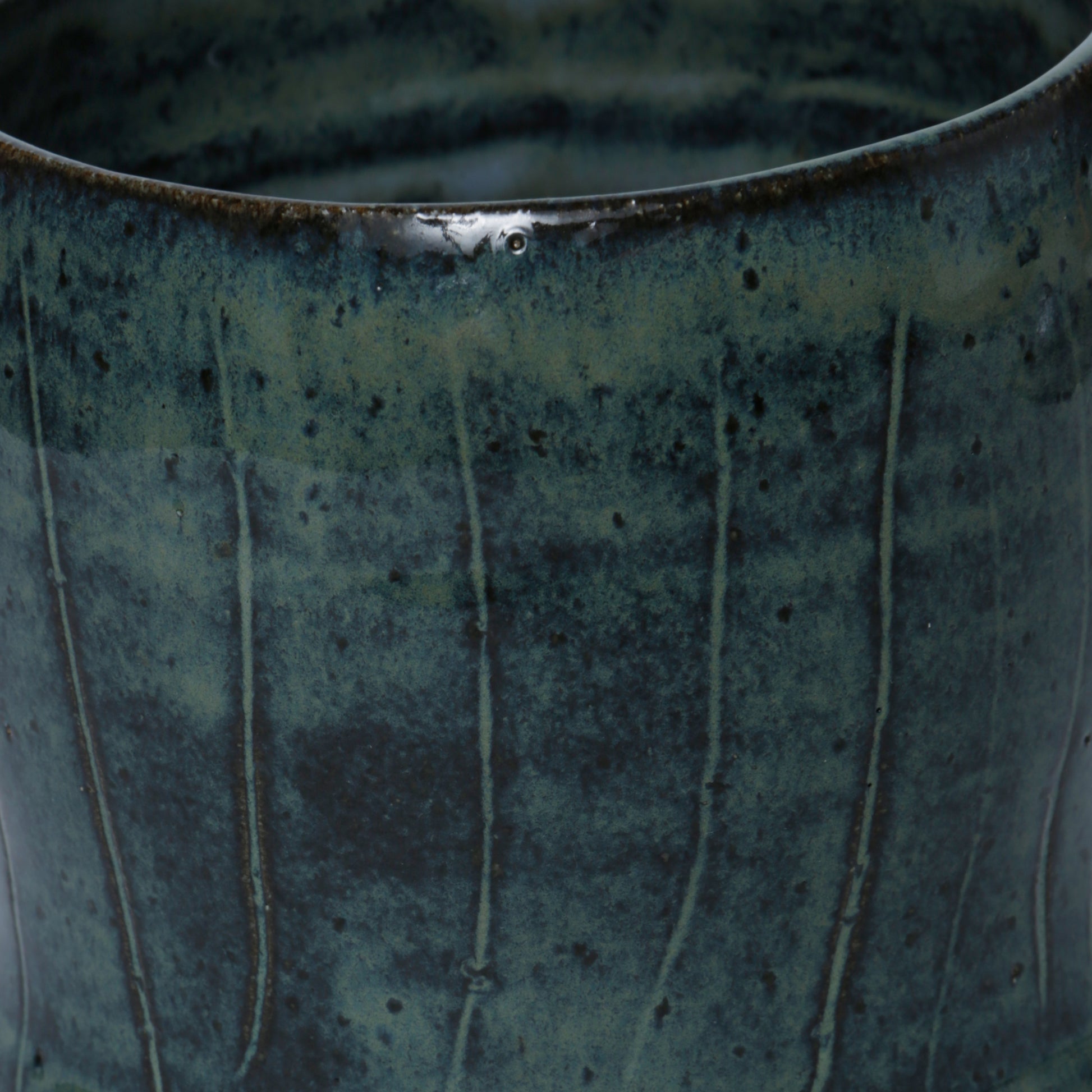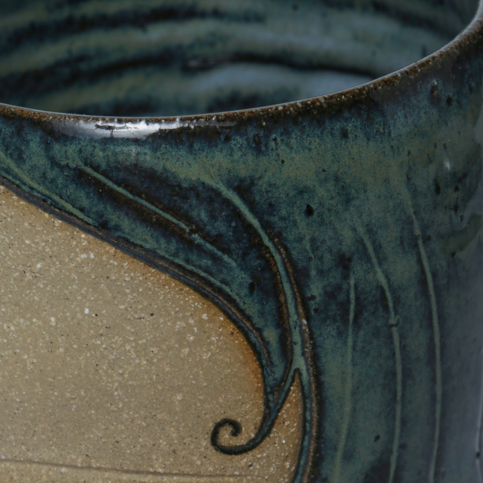 Hand-made ceramic vessel. This piece is thrown on the wheel, hand-sculpted, then it is fired in a kiln, glazed for coloring, then fired once again for final product. Each piece is one of a kind. No piece is perfect and there may be small imperfections.