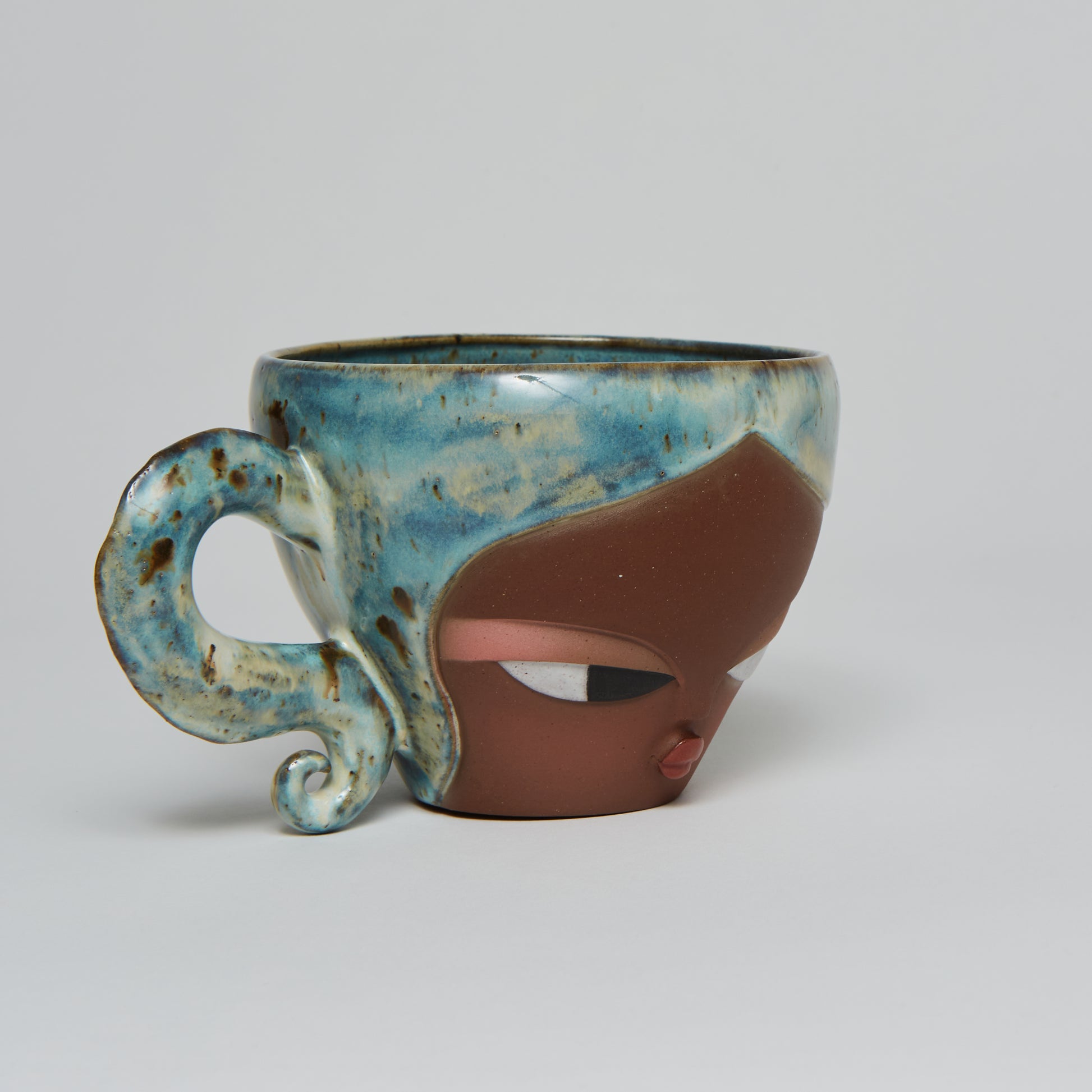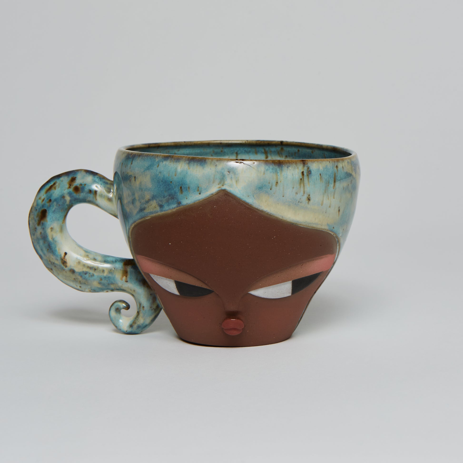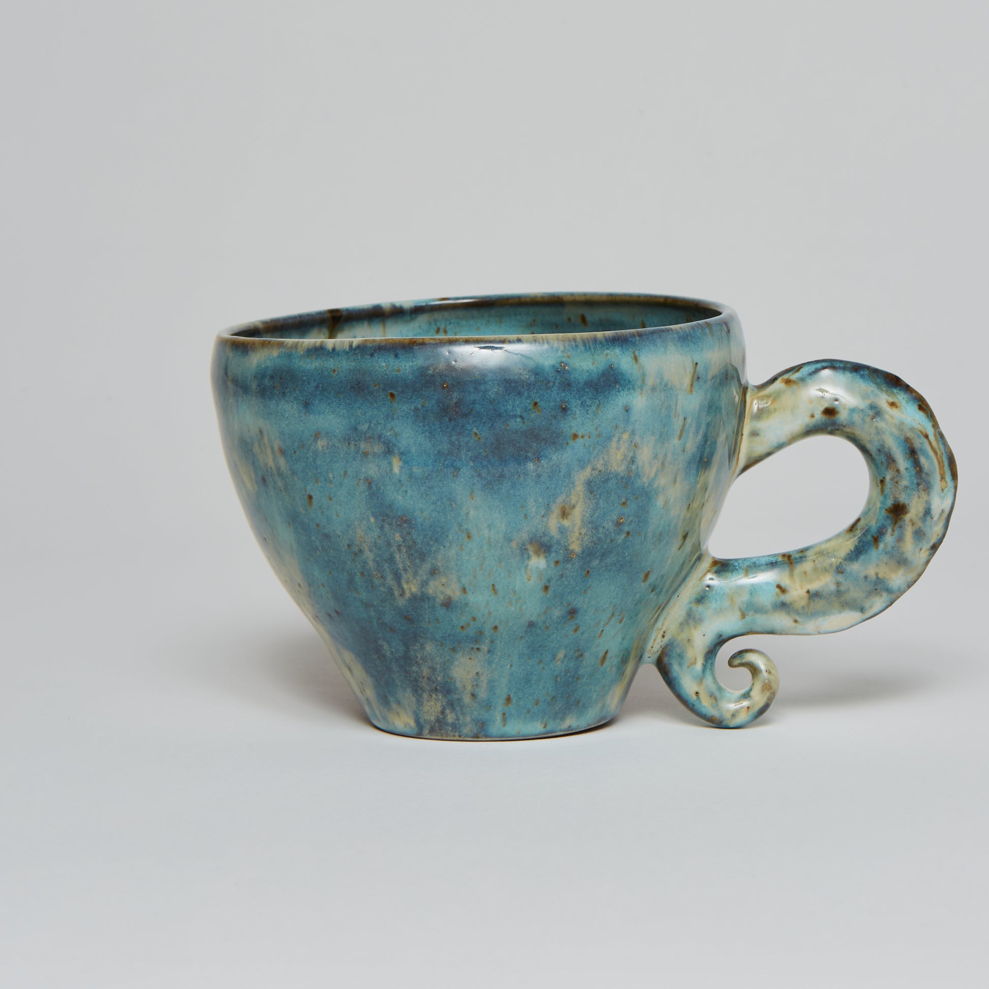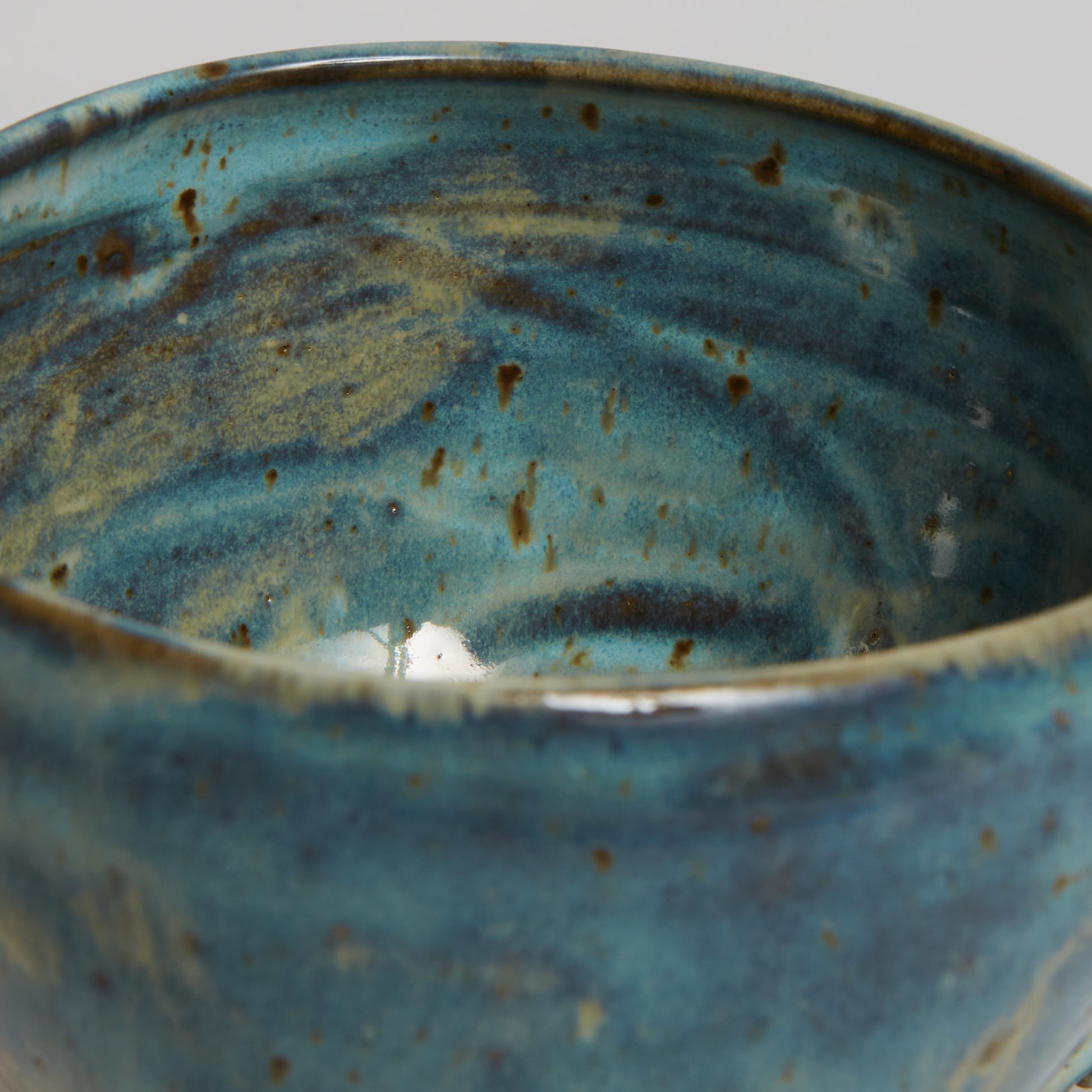 Hand-made ceramic vessel. This piece is thrown on the wheel, hand-sculpted, then it is fired in a kiln, glazed for coloring, then fired once again for final product. Each piece is one of a kind. No piece is perfect and there may be small imperfections.