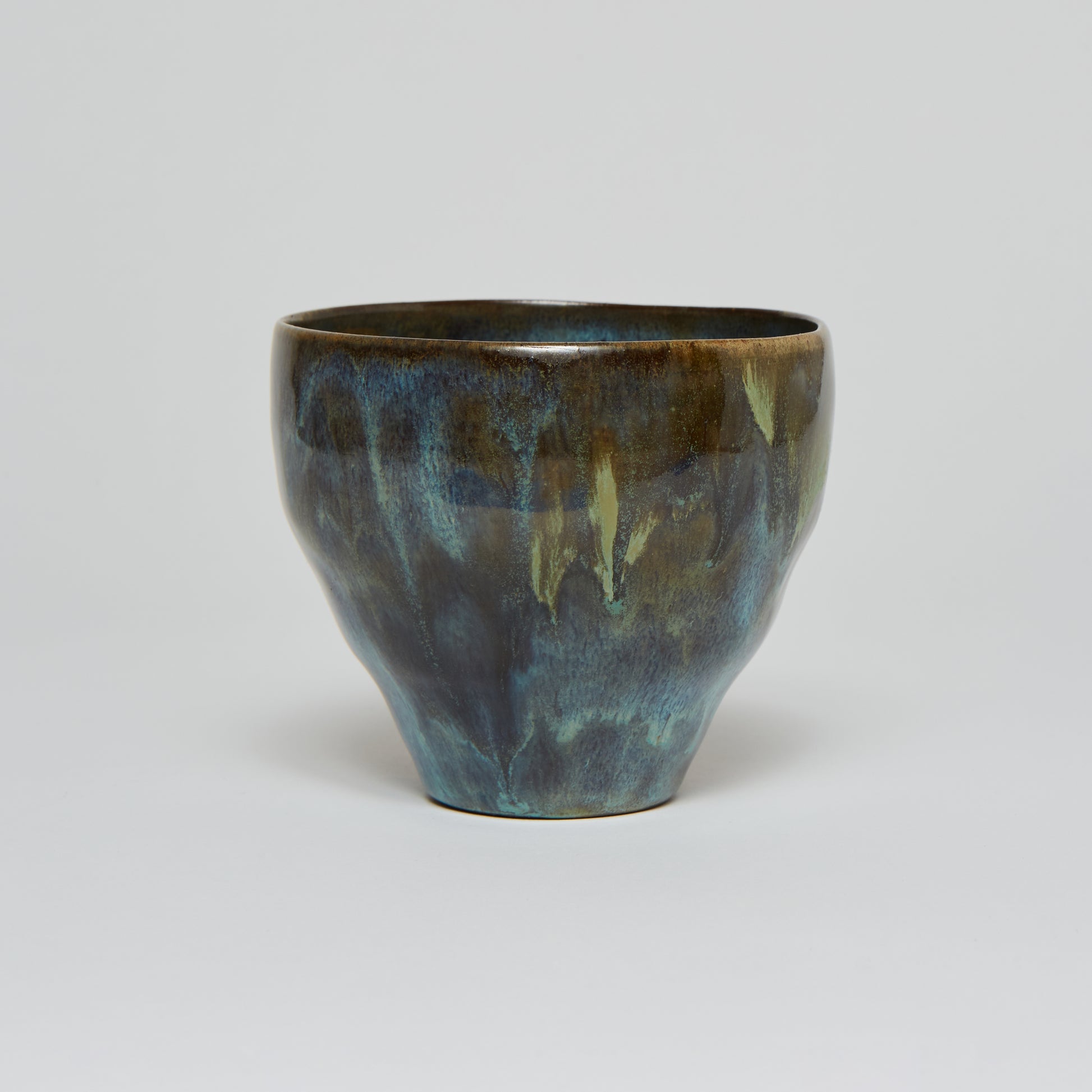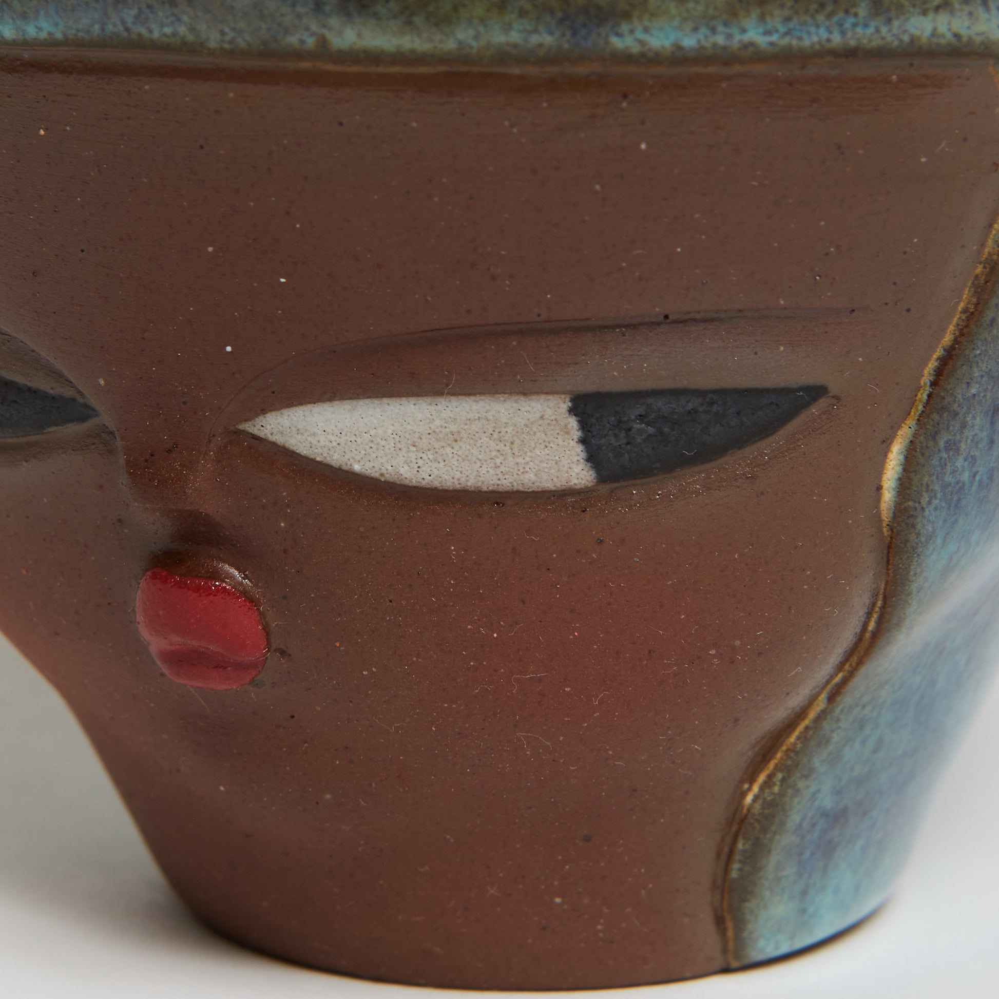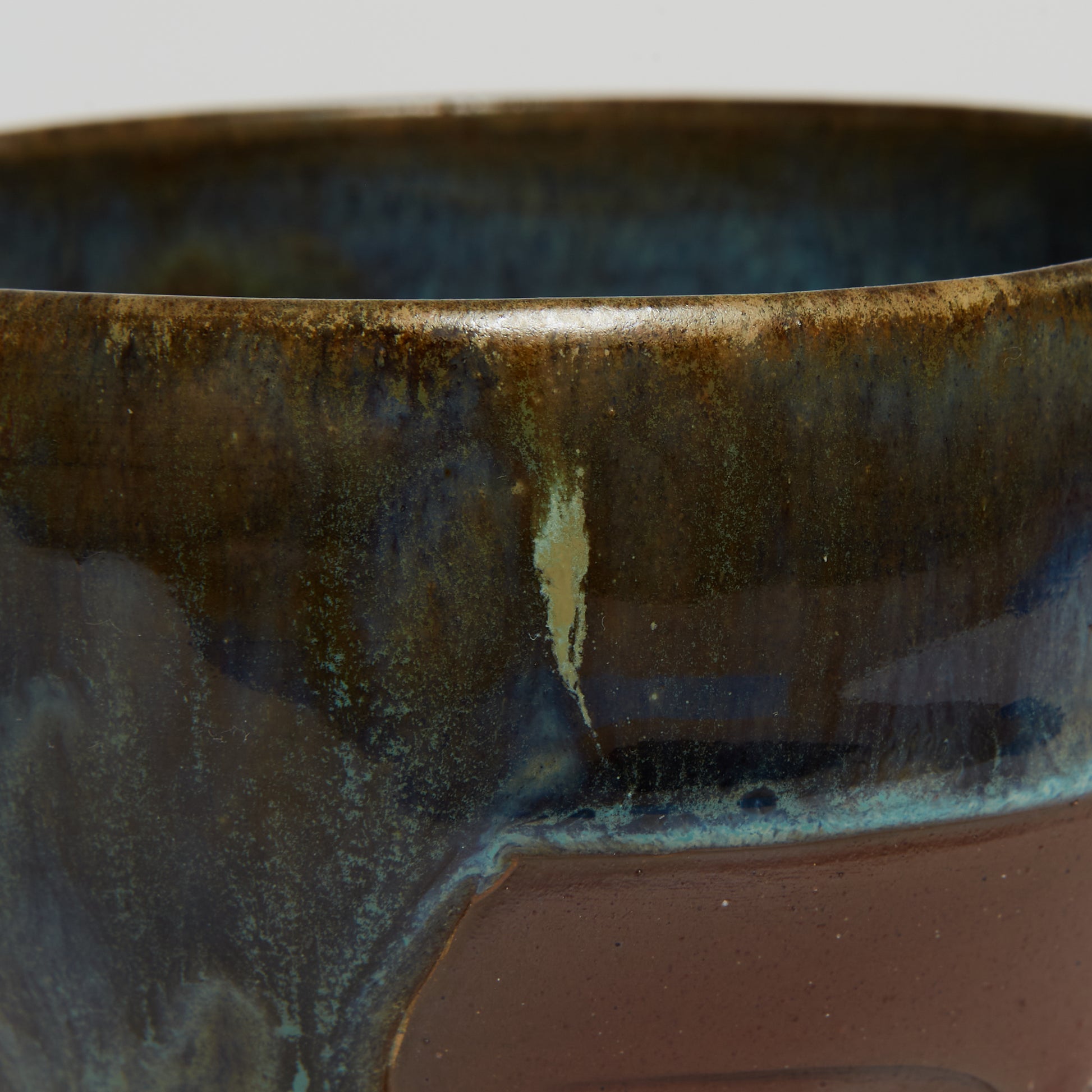 Hand-made ceramic vessel. This piece is thrown on the wheel, hand-sculpted, then it is fired in a kiln, glazed for coloring, then fired once again for final product. Each piece is one of a kind. No piece is perfect and there may be small imperfections.